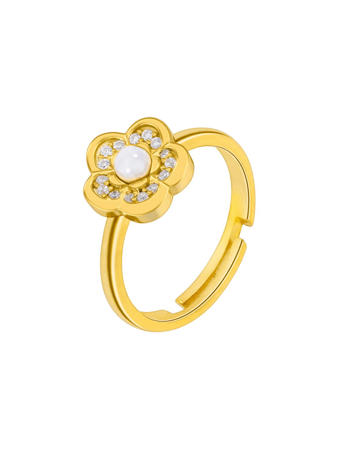 Anillo flor perla. Plata de 1ª Ley baño en oro de 18k. Circonitas en microengaste.