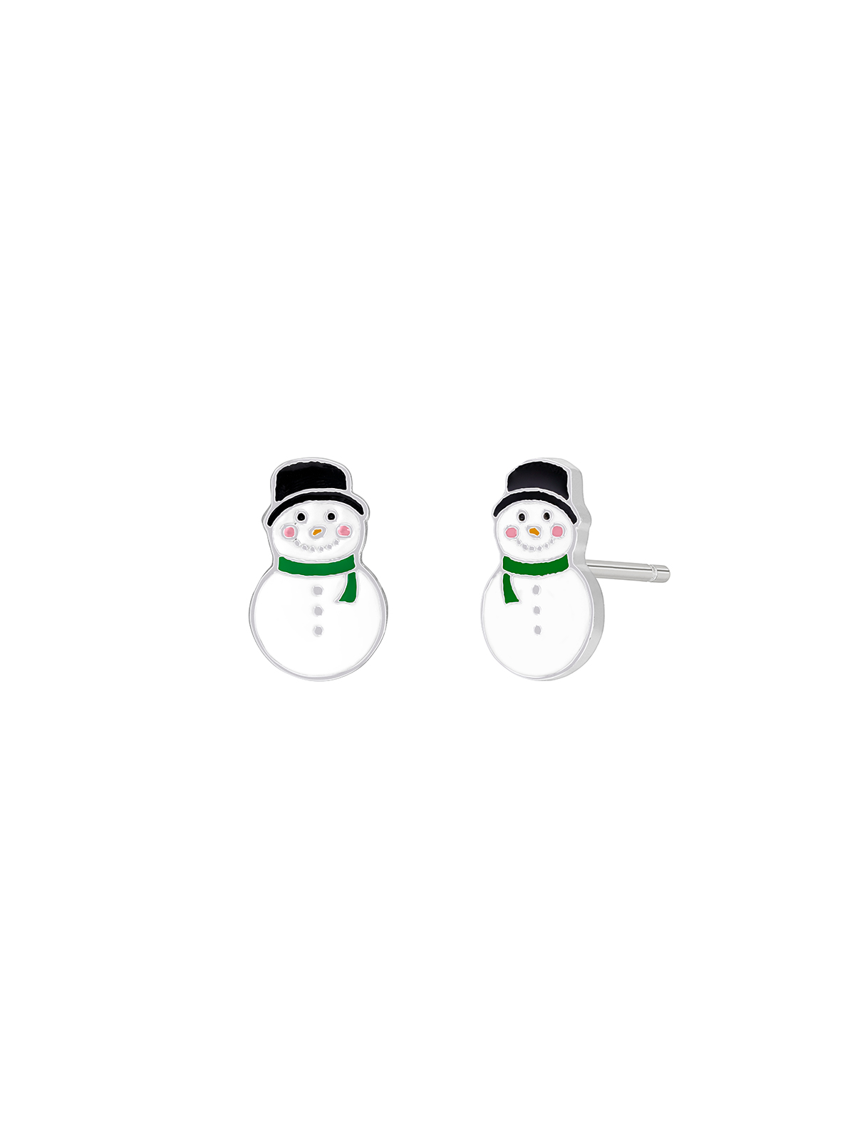 Pendiente muñeco de nieve. Plata de 1ª Ley rodiada. Esmalte negro, blanco, rosa, verde y naranja. Cierre presión.
