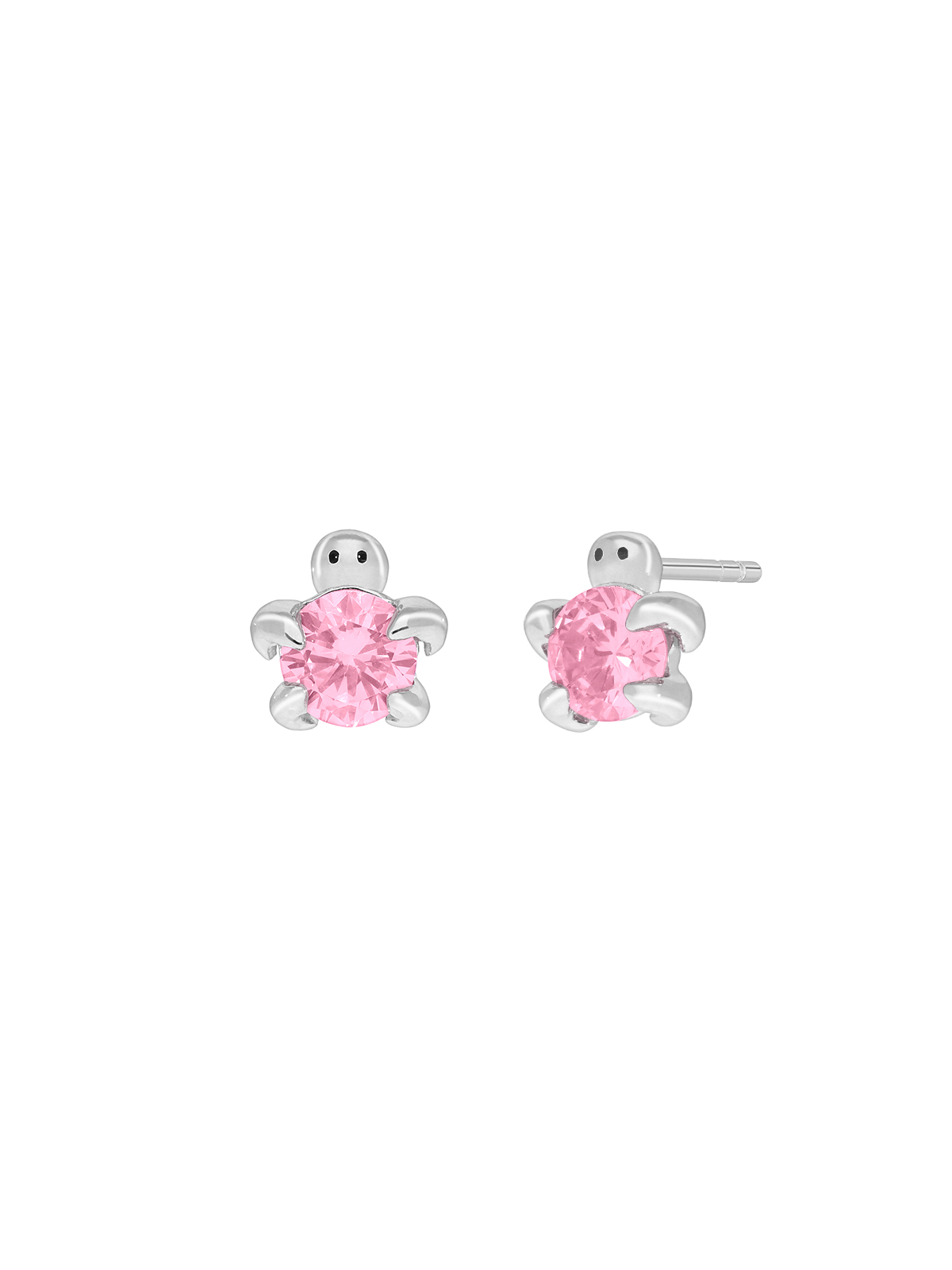 Pendiente tortuga con circonita de color rosa. Cierre presión.