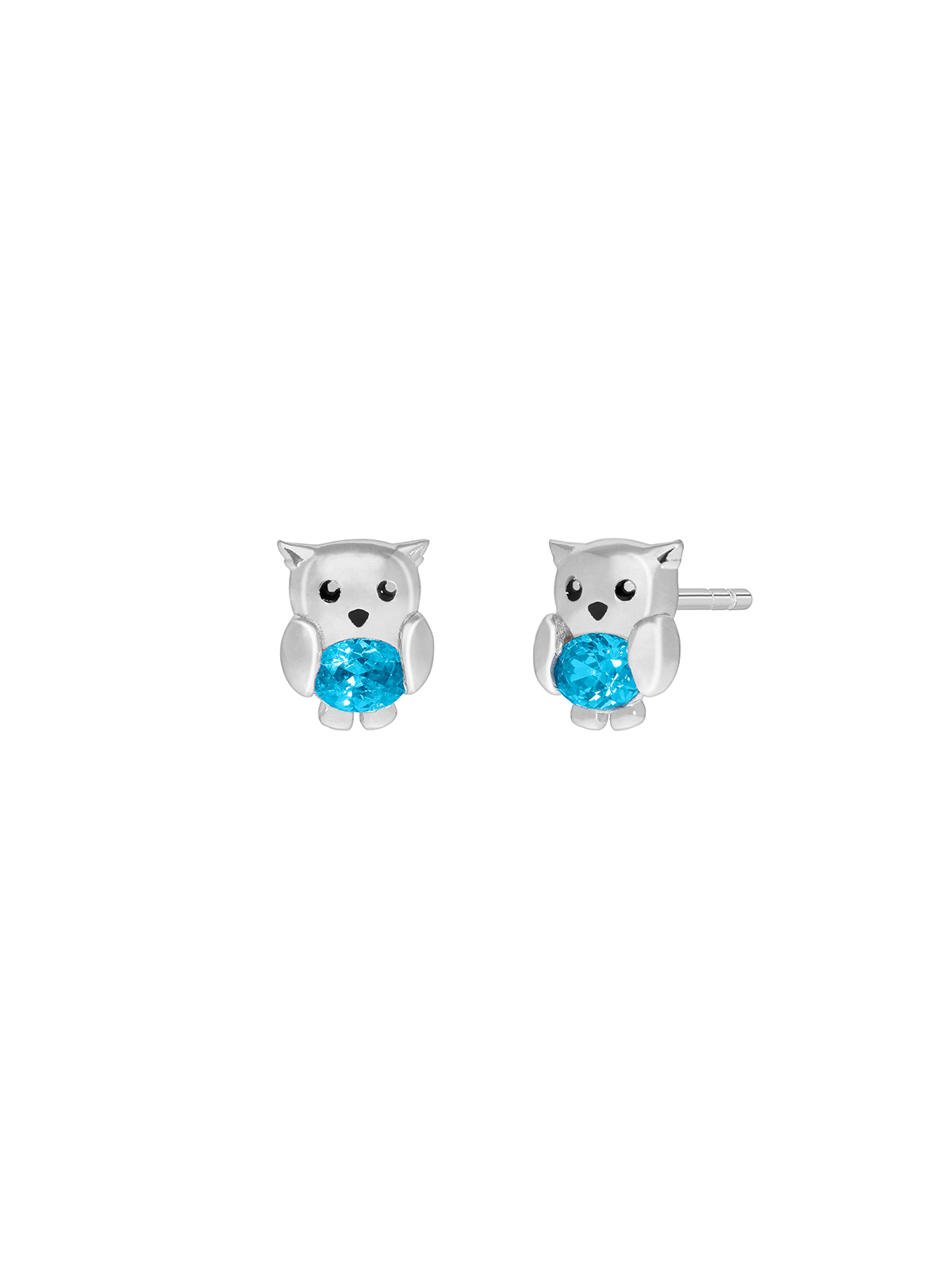 Pendiente búho con circonita de color azul. Cierre presión.