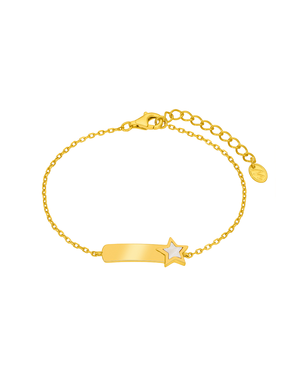Pulsera plaquita estrella nácar. Plata de 1ª Ley baño de oro de 18k. Cierre mosquetón. Cadena adaptable