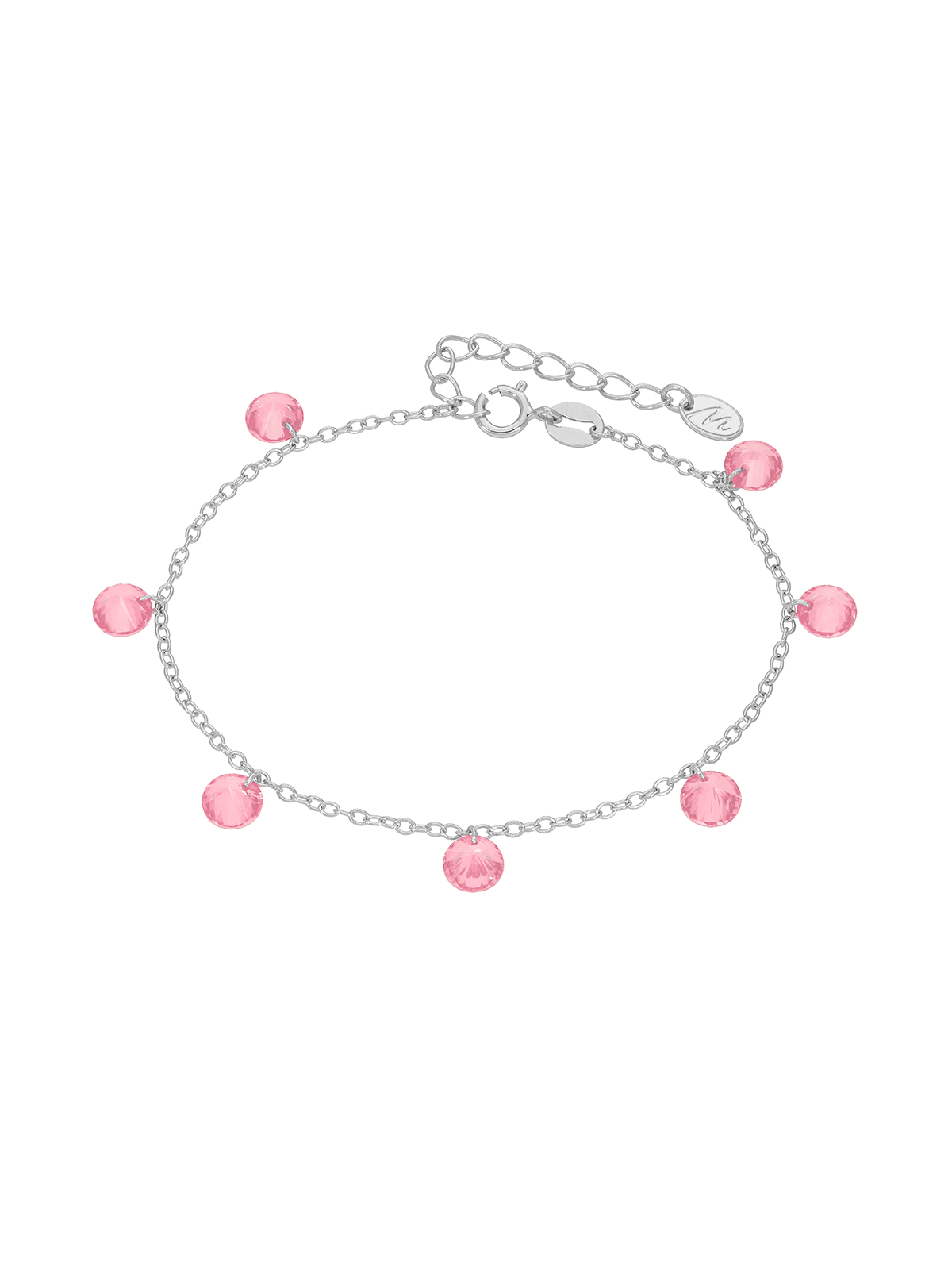 Pulsera con multicirconitas. Circonitas de color rosa. Tiene un cierre reasa con cadena adptable.