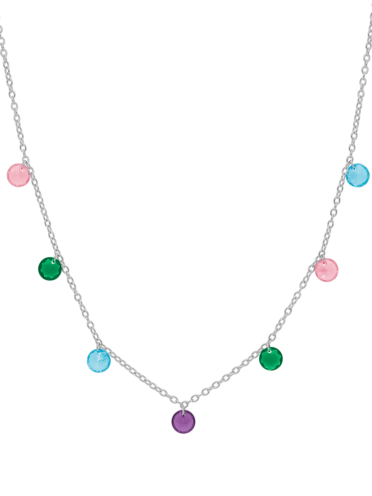 Pulsera con multicirconitas. Circonitas color: rosa, verde, lila y azul. Tiene un cierre reasa con cadena adptable.