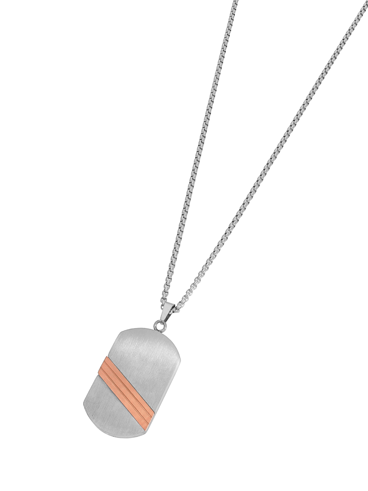 Collar de acero inoxidable con placa bicolor en detalles rose gold.