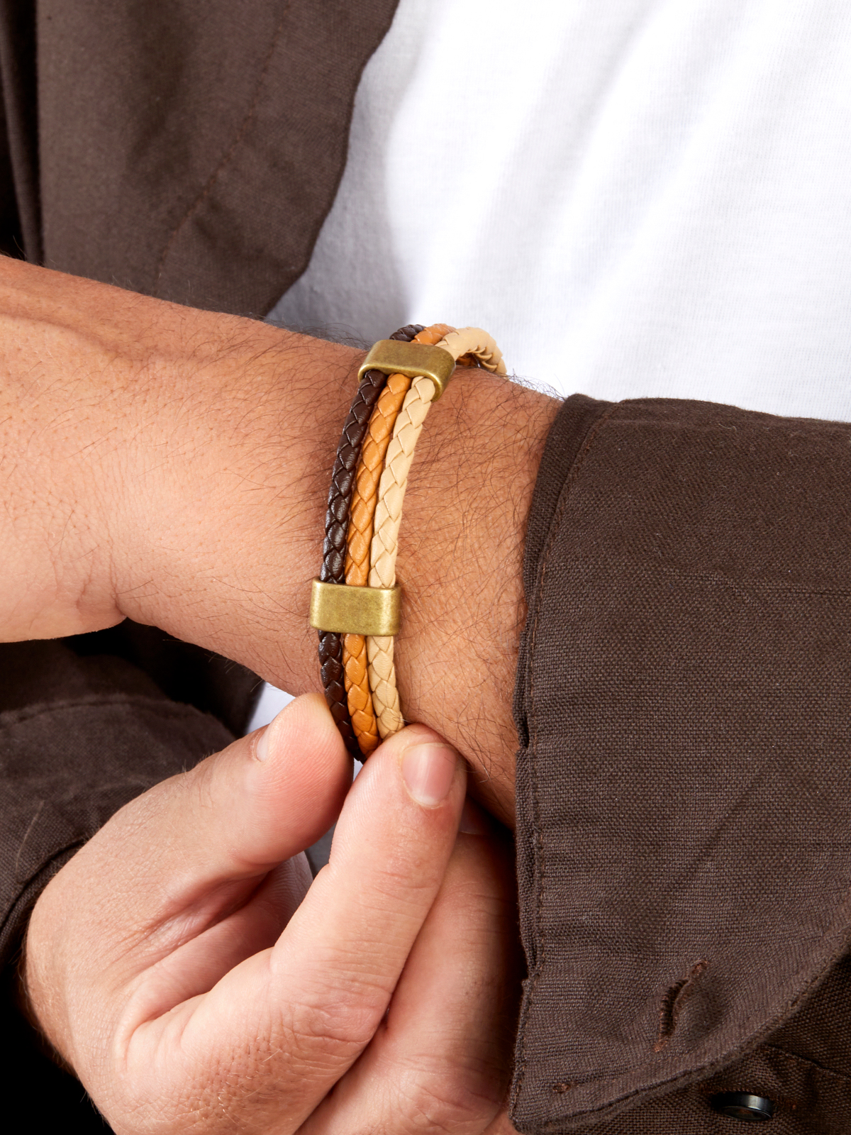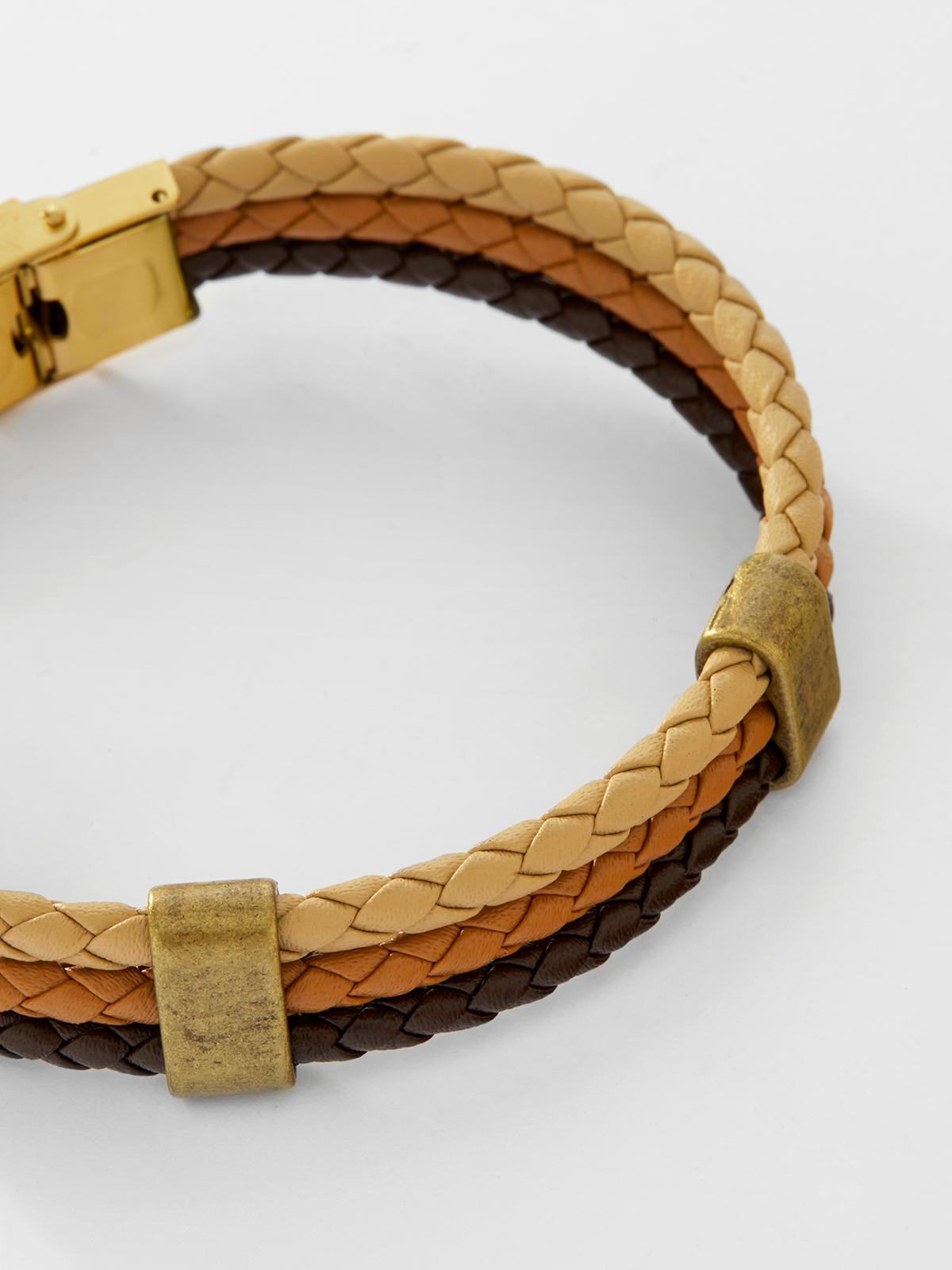 Material pulsera: Acero color dorado y piel en diferentes tonos de marrón.