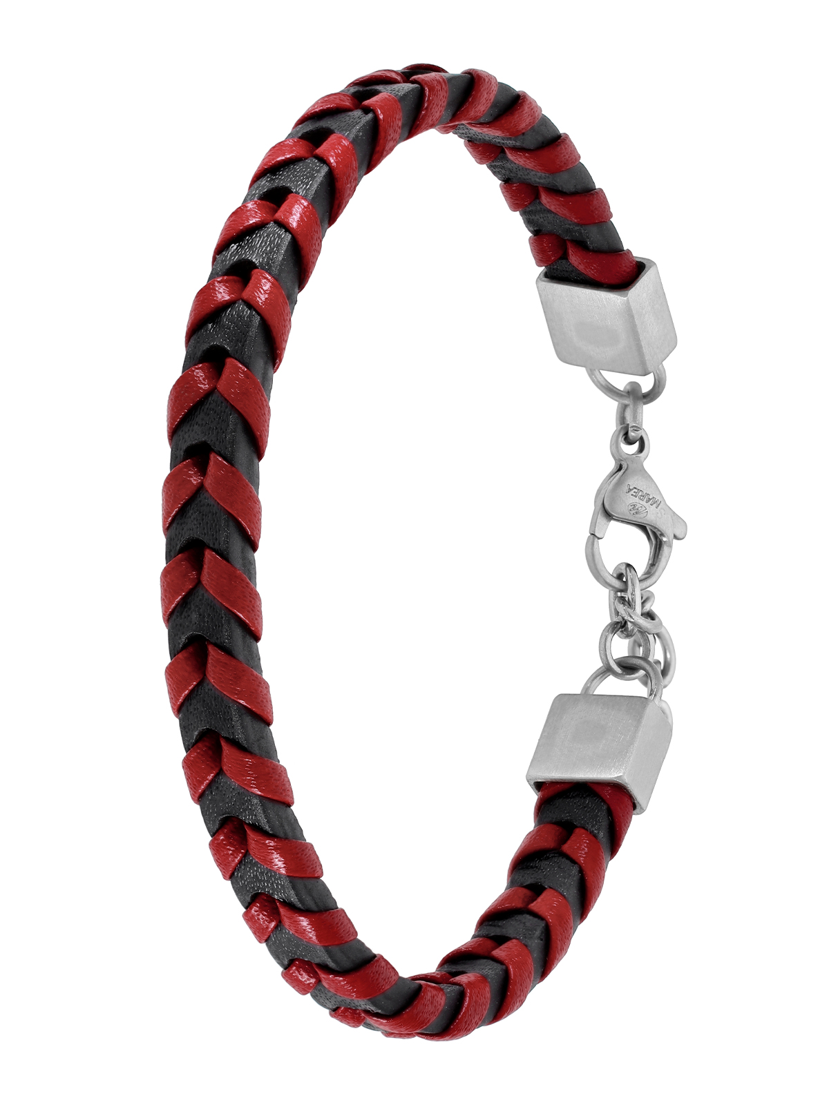 Pulsera de piel trenzada combinada en dos colores: rojo y negro.