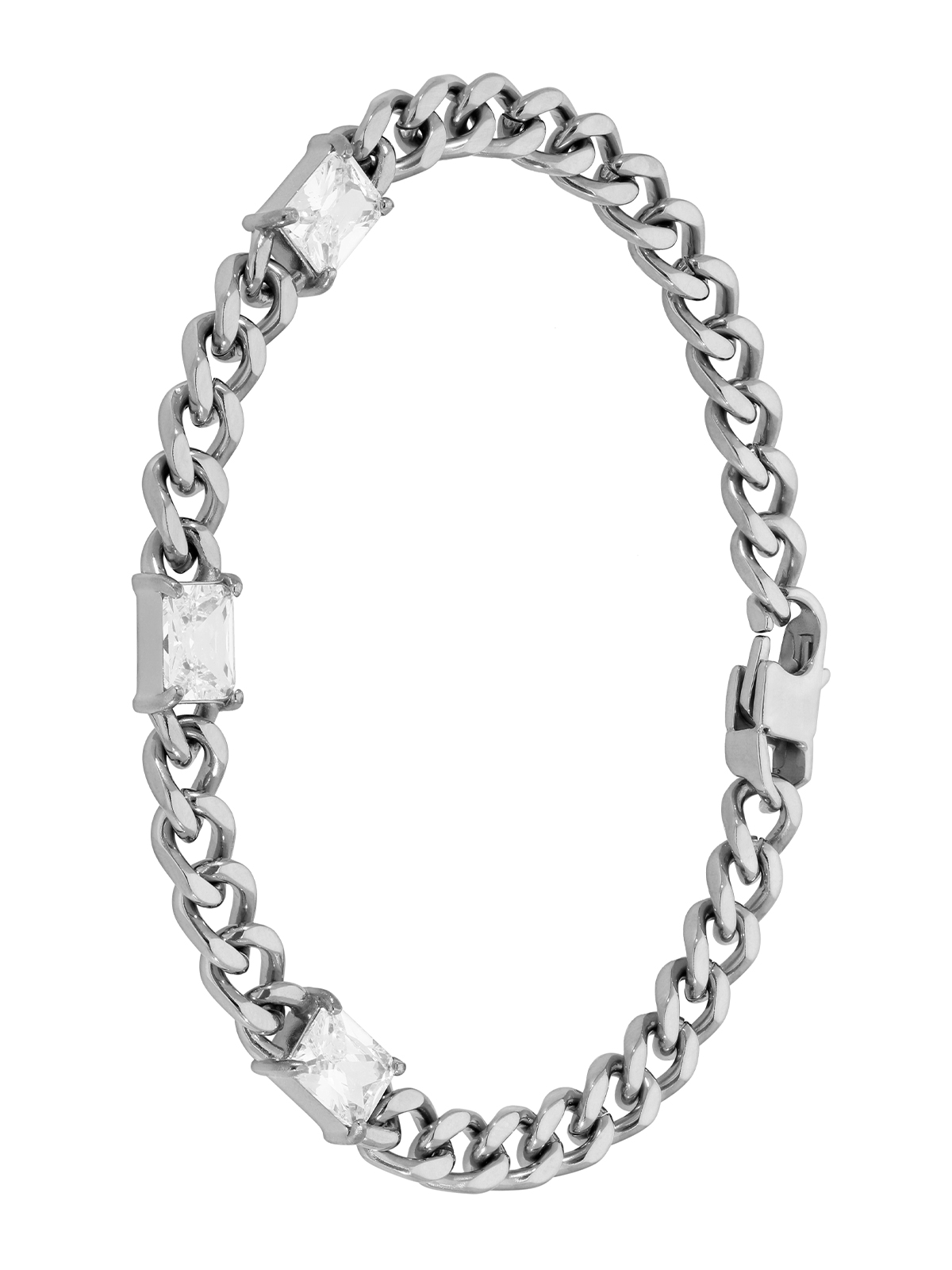 Pulsera eslabones circonitas rectangular. Versión en acero.