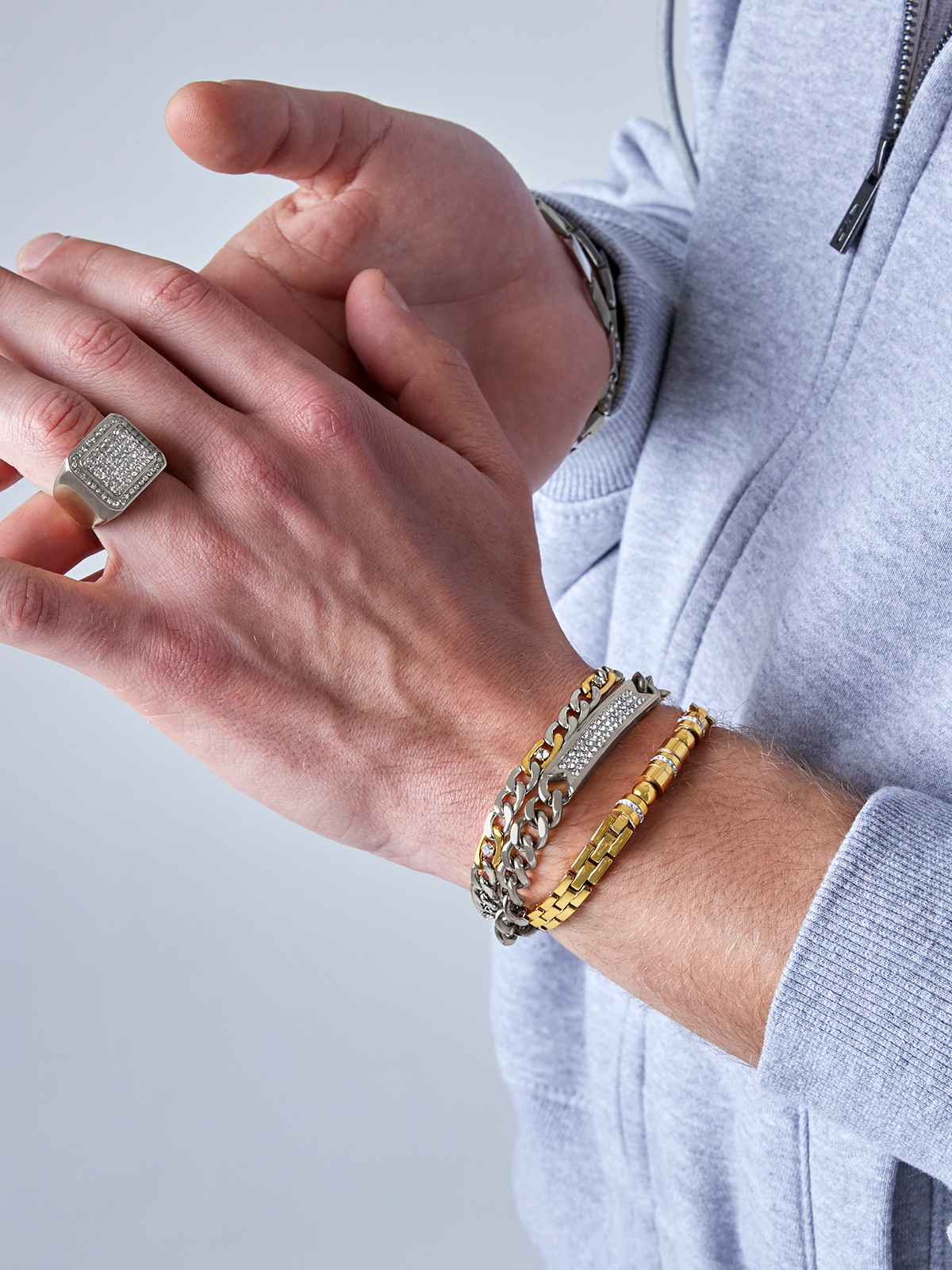 Pulsera eslabones bicolor de acero inoxidable. Version bicolor acero y dorado con circonitas.