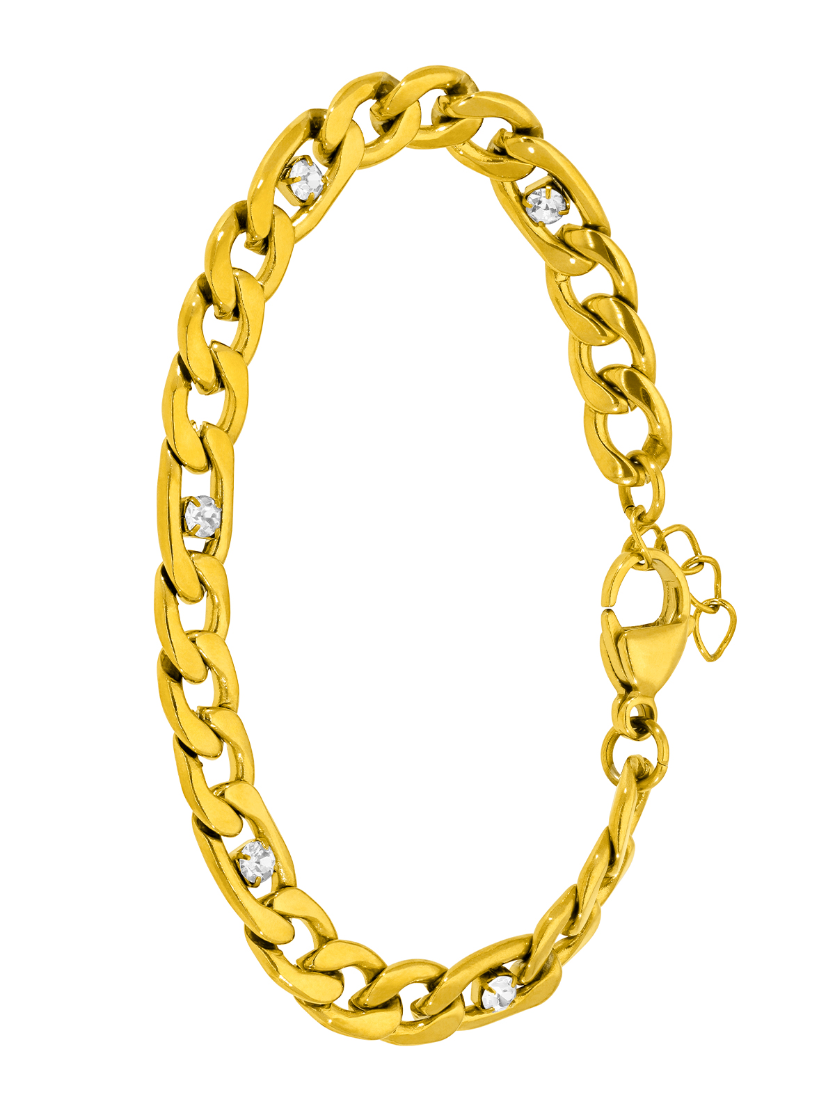 Pulsera cadena eslabones de acero inoxidable versión en dorado con circonitas.