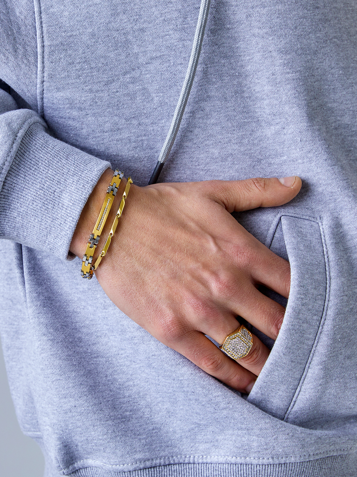 Pulsera eslabones de acero inoxidable versión en dorado.