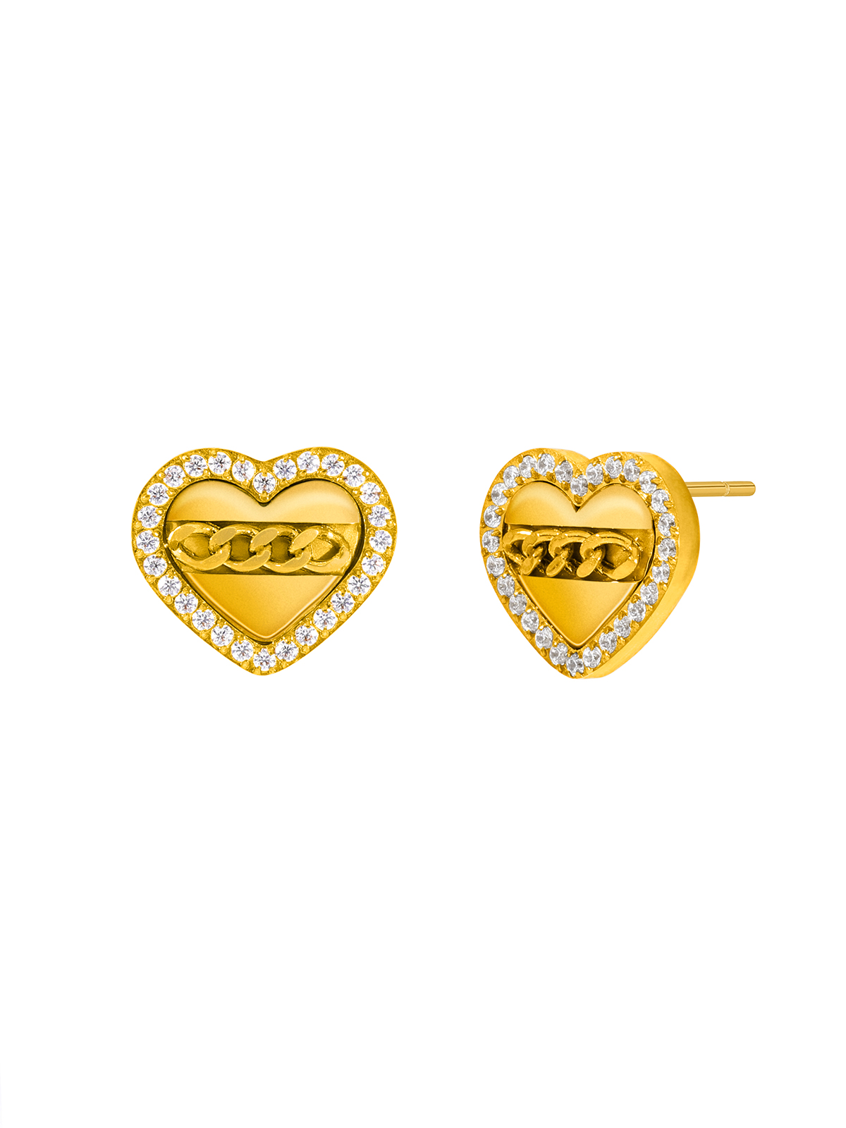 Pendiente corazón. Cadena de eslabones. Versión en dorado. Cierre presión.