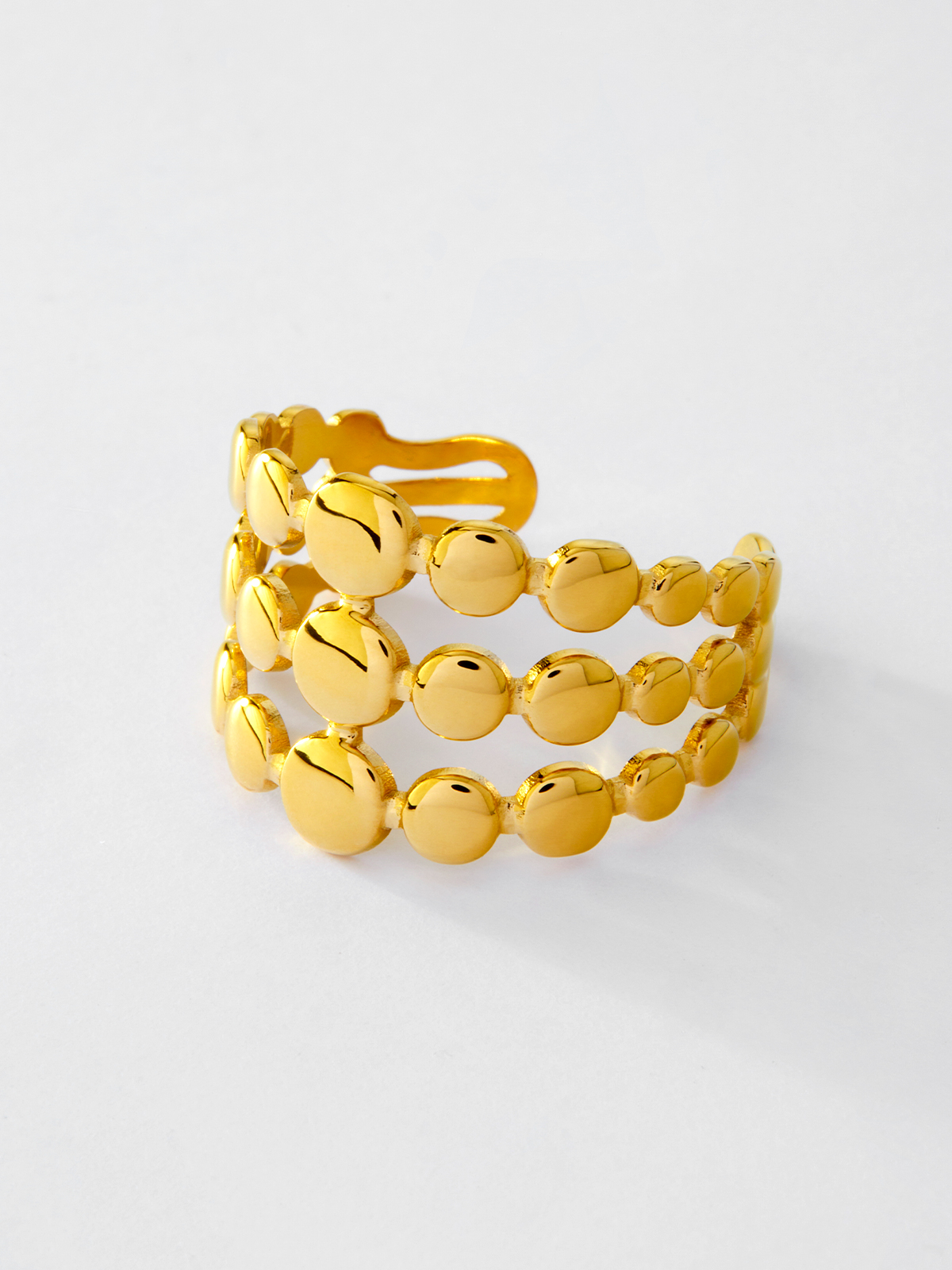Anillo abierto de bolas. Versión en dorado.