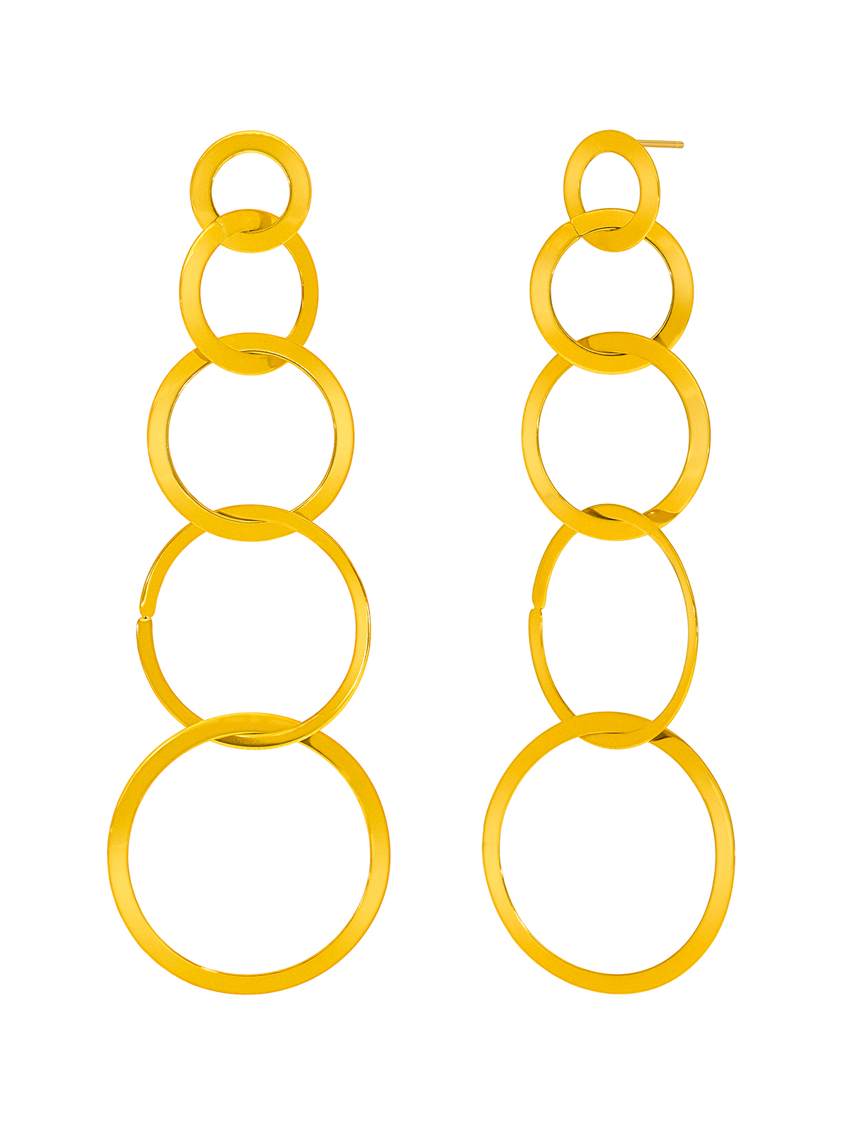 Pendientes cadena de aros. Versión en dorado. Cierre presión.