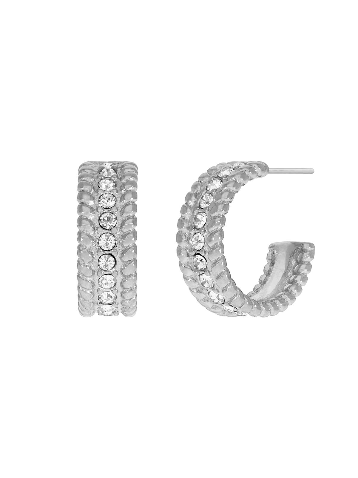 Pendientes aro con circonitas. Versión en acero. Cierre presión.
