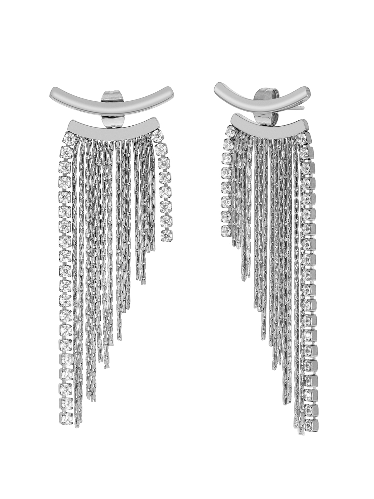 Pendientes cadenas. Circonitas riviere. Versión en acero. Cierre presión.