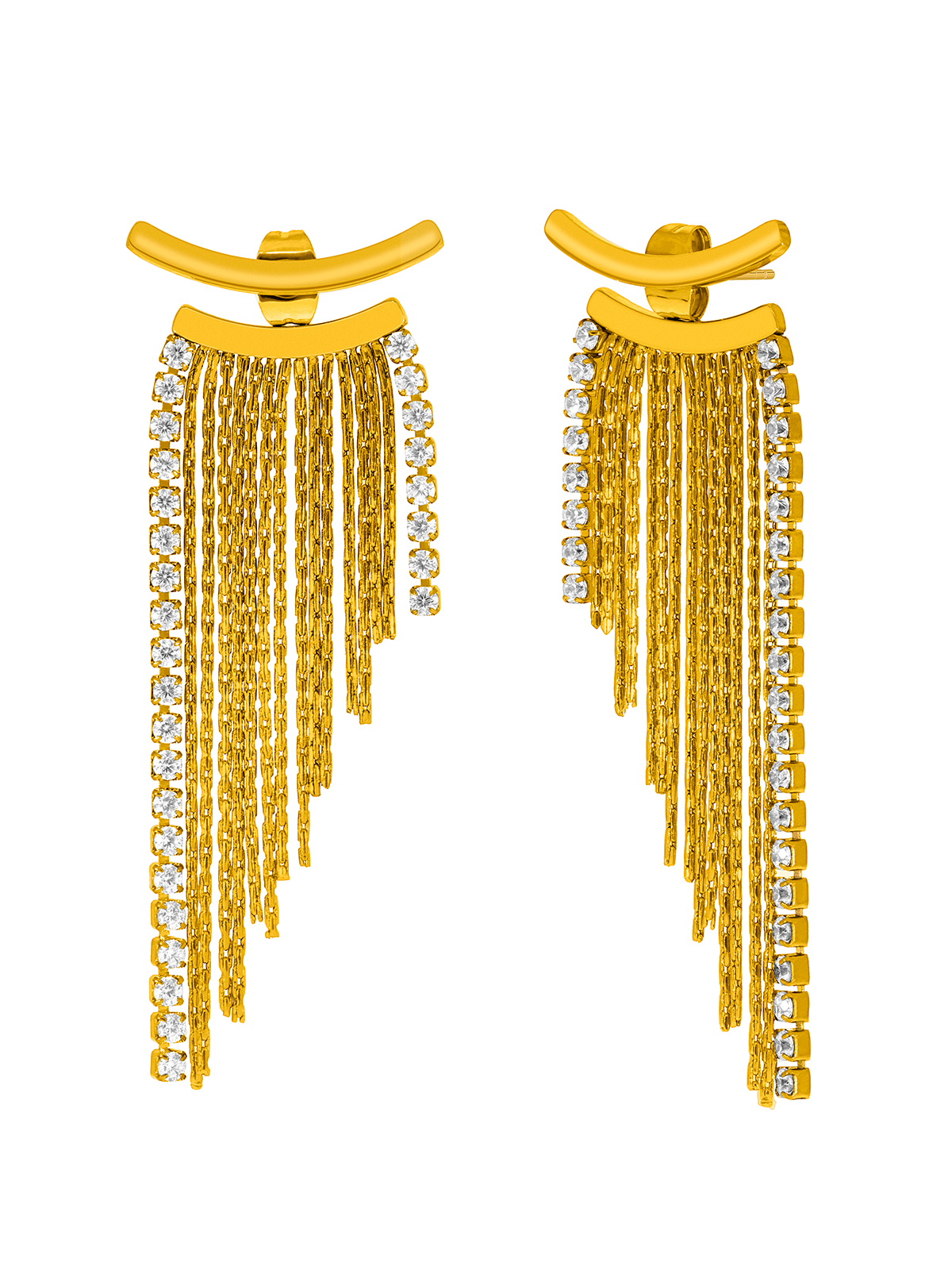 Pendientes cadenas. Circonitas riviere. Versión en dorado. Cierre presión.