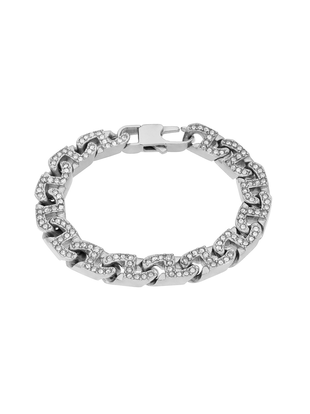 Pulsera eslabones con circonitas. Versión en acero. Cierre mosquetón.