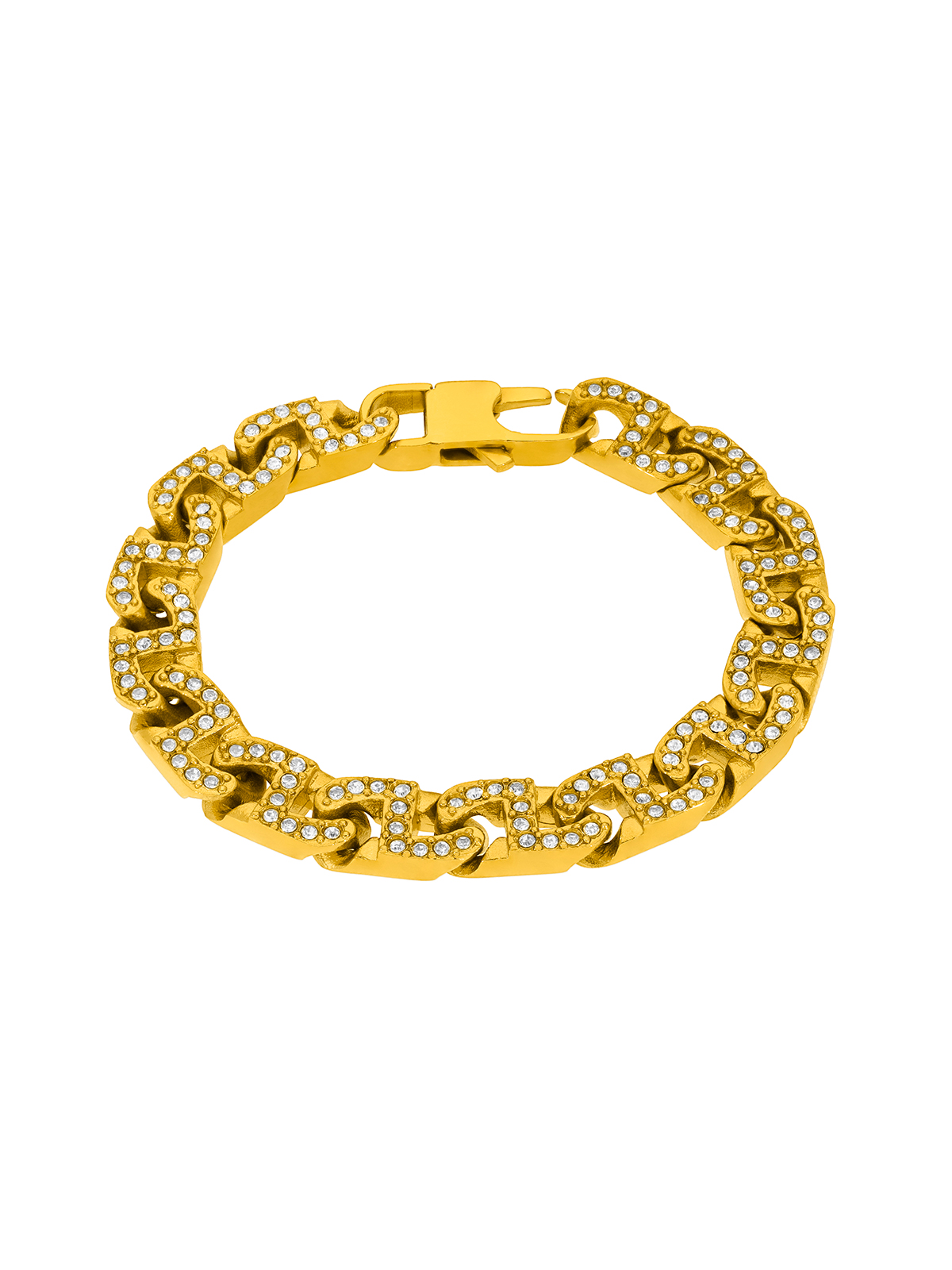 Pulsera eslabones con circonitas. Versión en dorado. Cierre mosquetón.