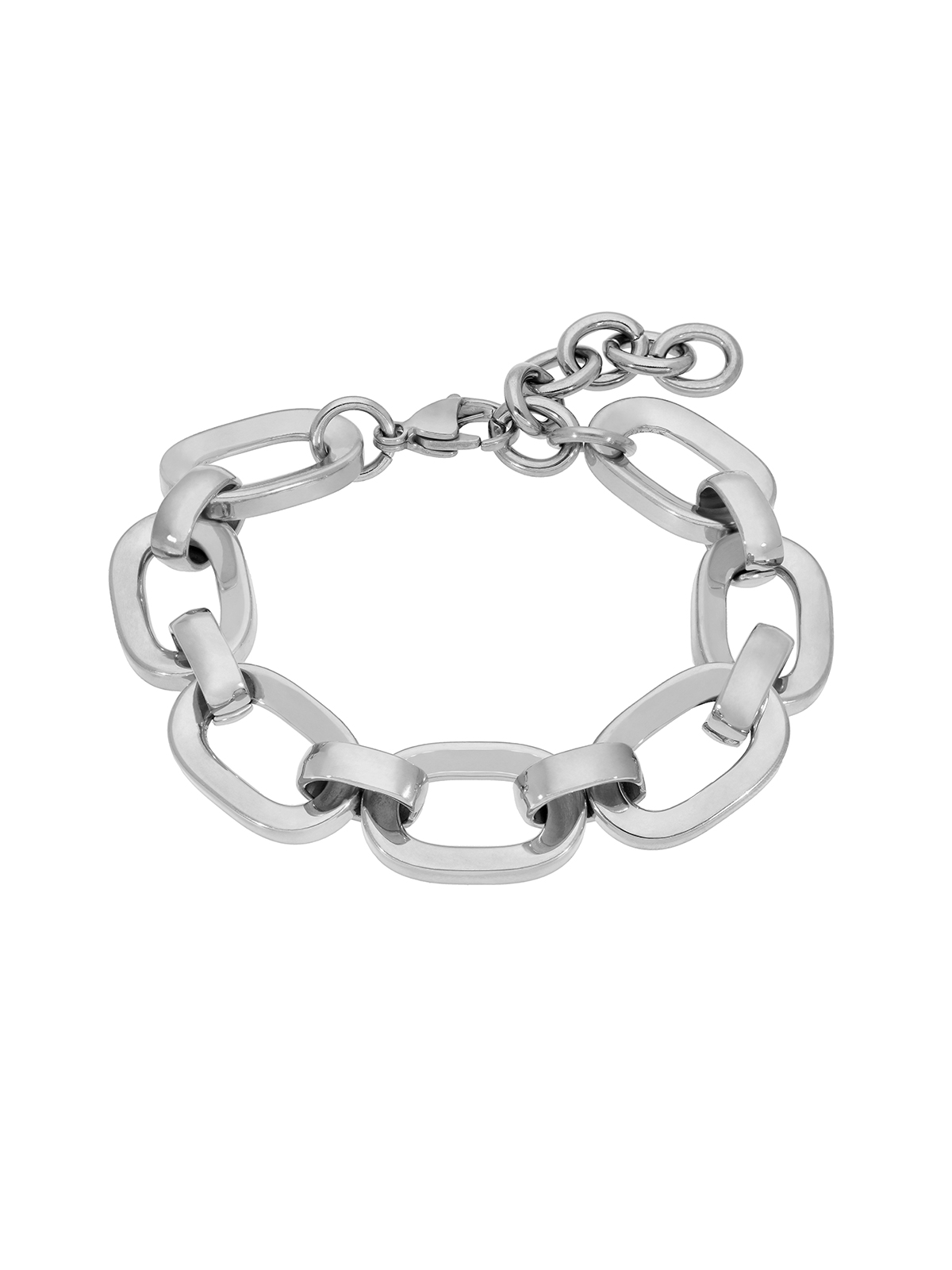Pulsera eslabón cuadrado. Versión en acero. Cierre mosquetón. Cadena adaptable.