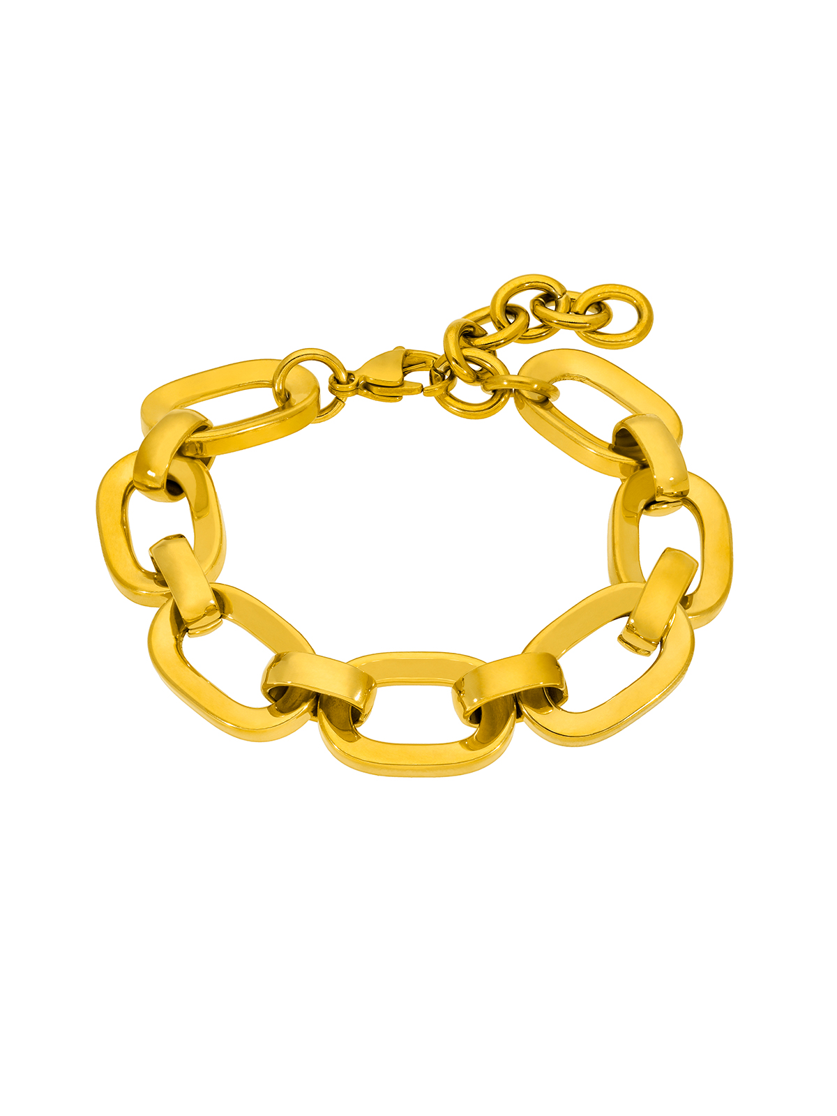 Pulsera eslabón cuadrado. Versión en dorado. Cierre mosquetón. Cadena adaptable.