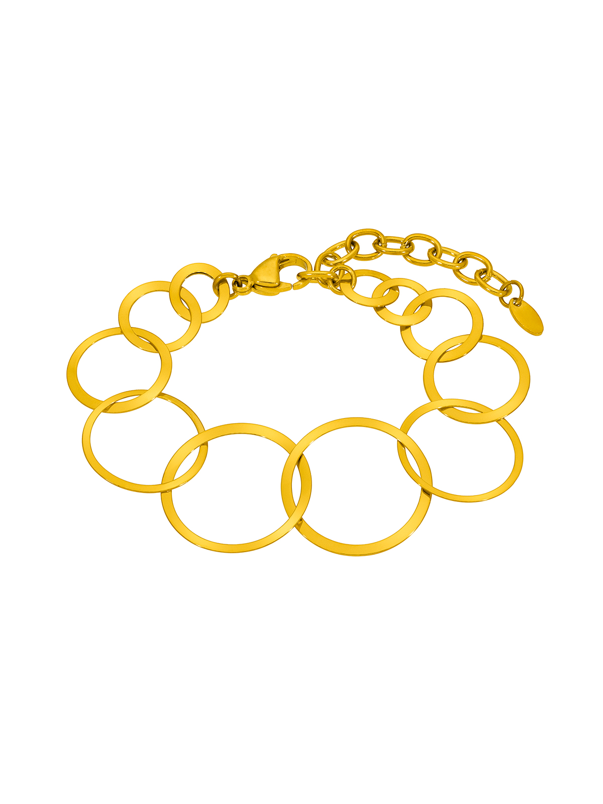 Pulsera cadena de aros. Versión en dorado. Cierre mosquetón. Cadena adaptable.