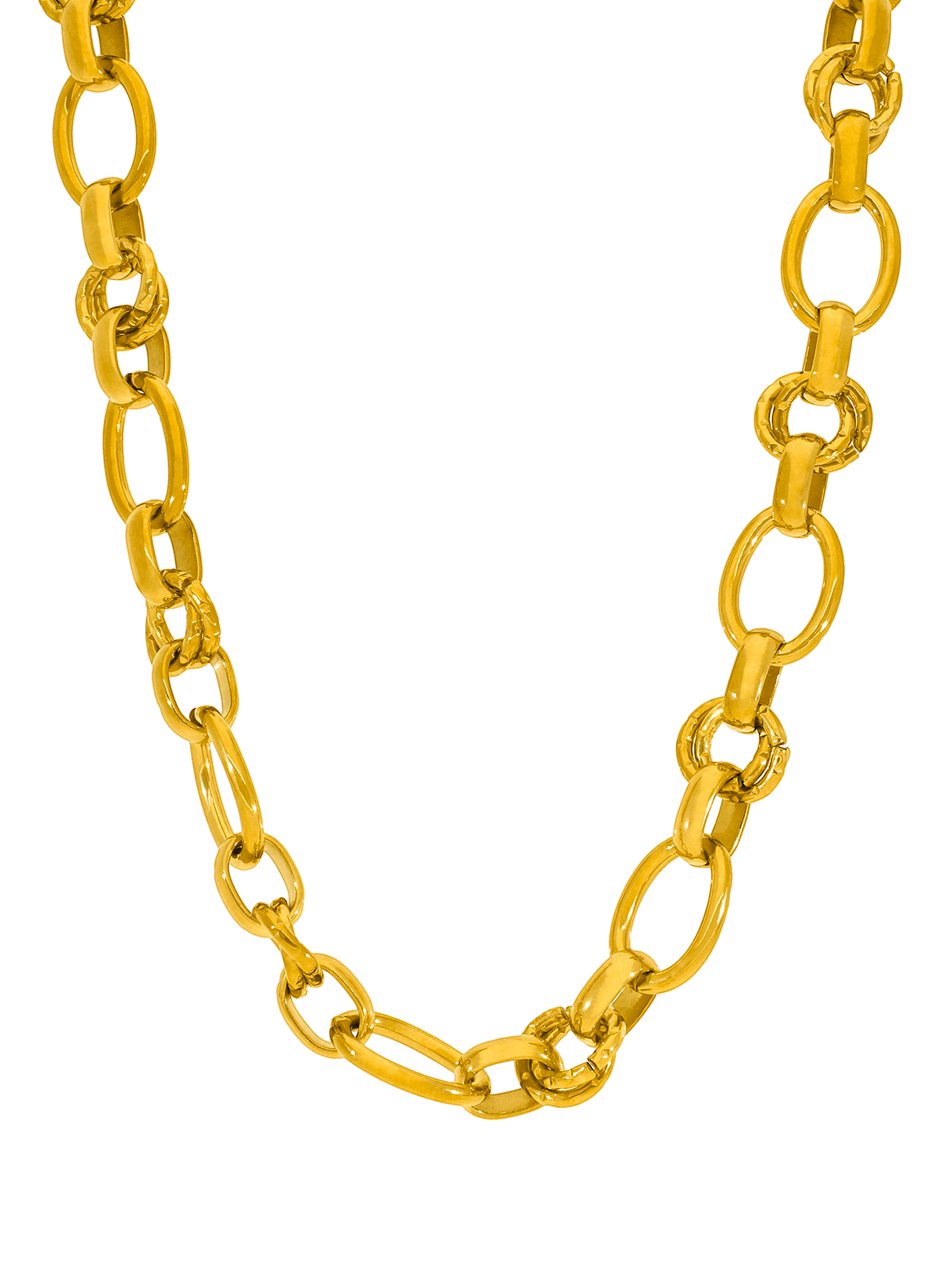 Collar eslabón doble aro con textura. Versión en dorado. Cierre mosquetón. Cadena adaptable.