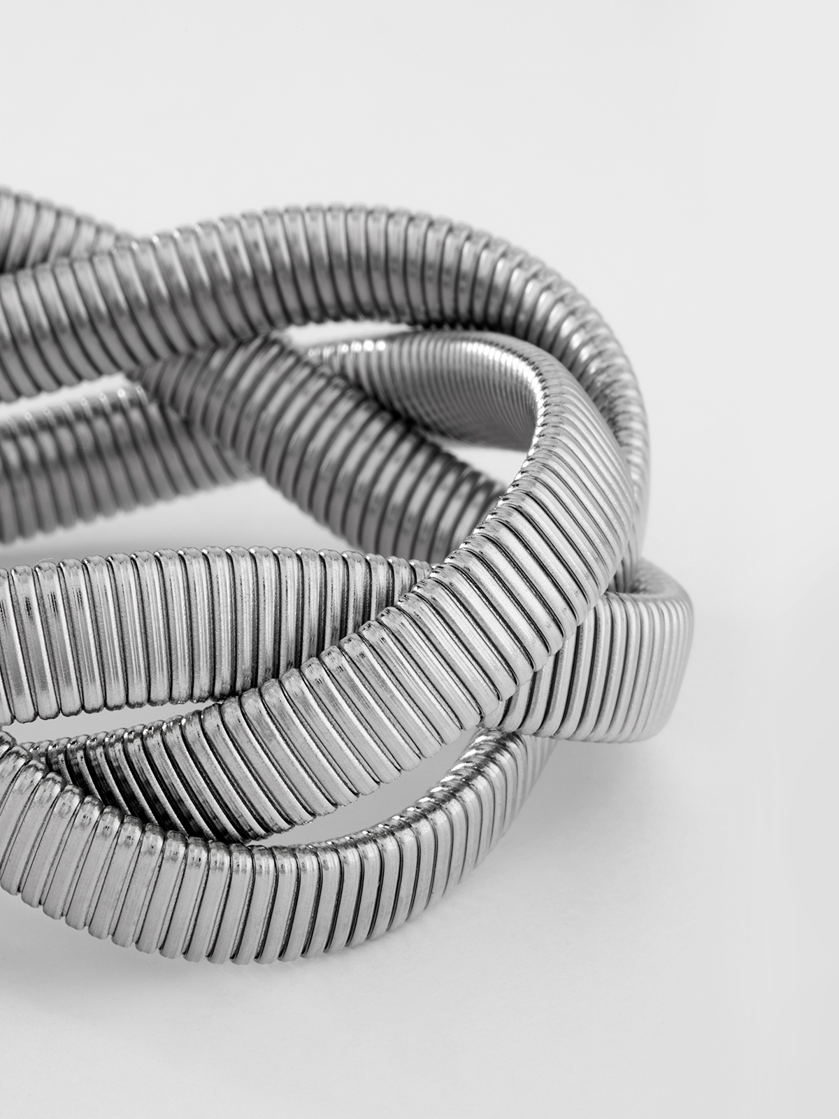 Pulsera trenzada con cierre mosquetón. Versión en acero.