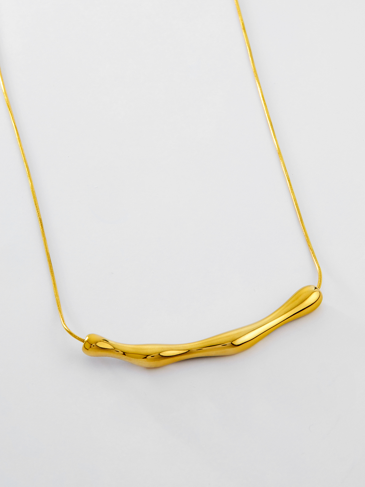Collar barra irregular con cierre mosquetón. Versión en dorado.