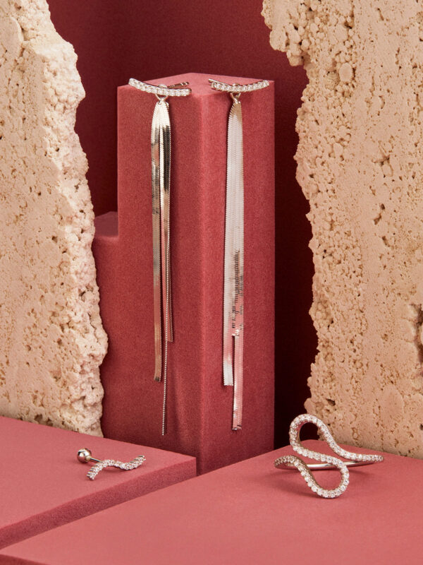 Anillo Abstract ondas circonitas. Plata de 1ª Ley rodiada. Circonitas en microengaste. Colección Abstract.