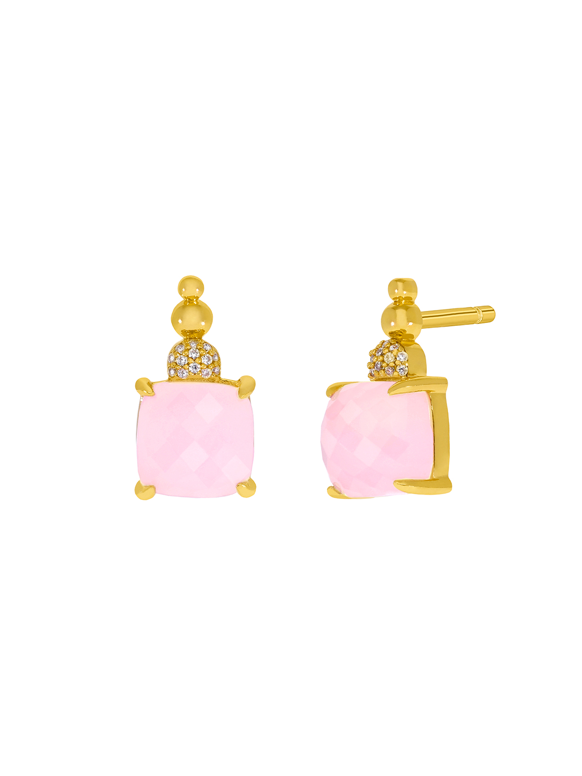 Pendientes Dubai. Plata de 1ª Ley baño en oro de 18k. Cuarzo rosa con circonitas. Cierre presión.