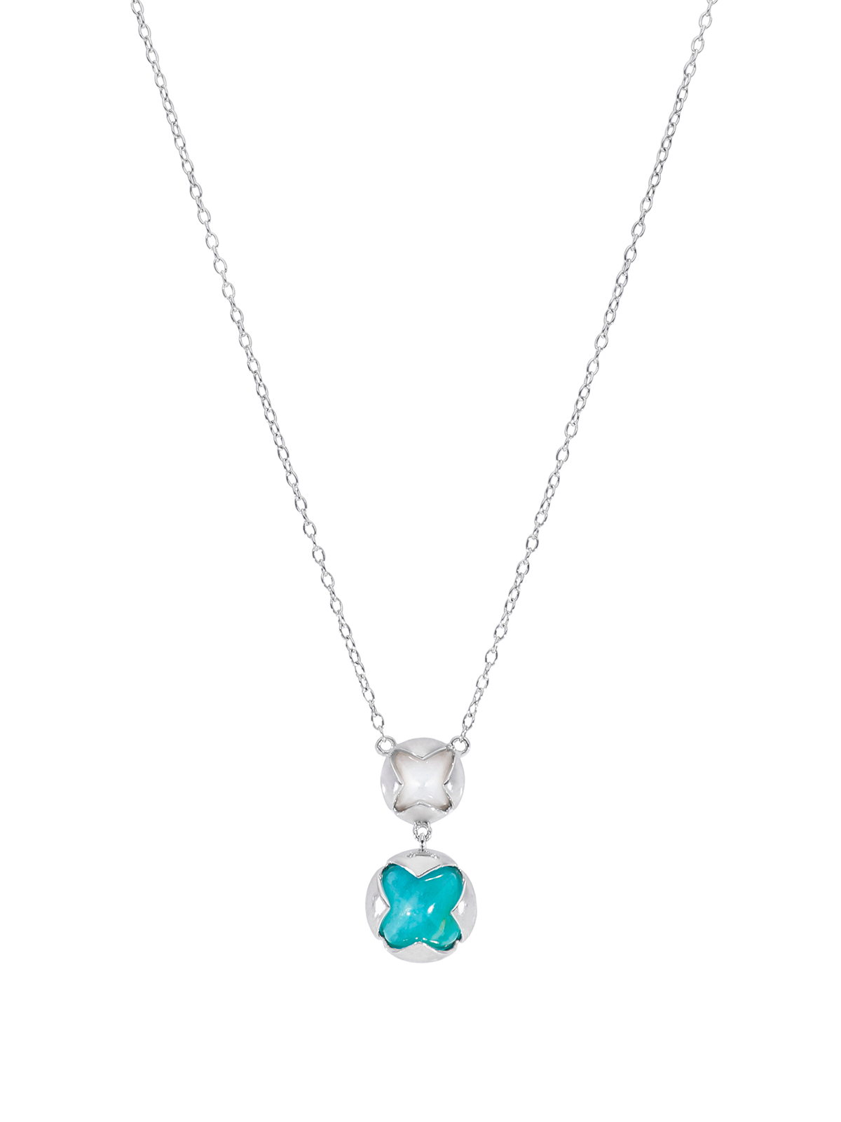 Collar Dubai. Plata de 1ª Ley rodiada. Amazonita natural y madreperla. Cierre mosquetón. Cadena adaptable.