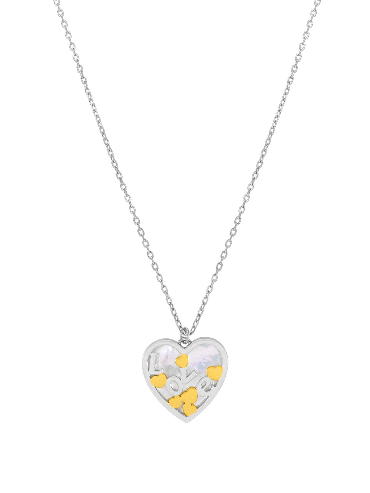 Collar corazón love bicolor. Plata de 1ª Ley rodiada y baño en oro de 18k. Nácar. Cierre mosquetón. Cadena adaptable.