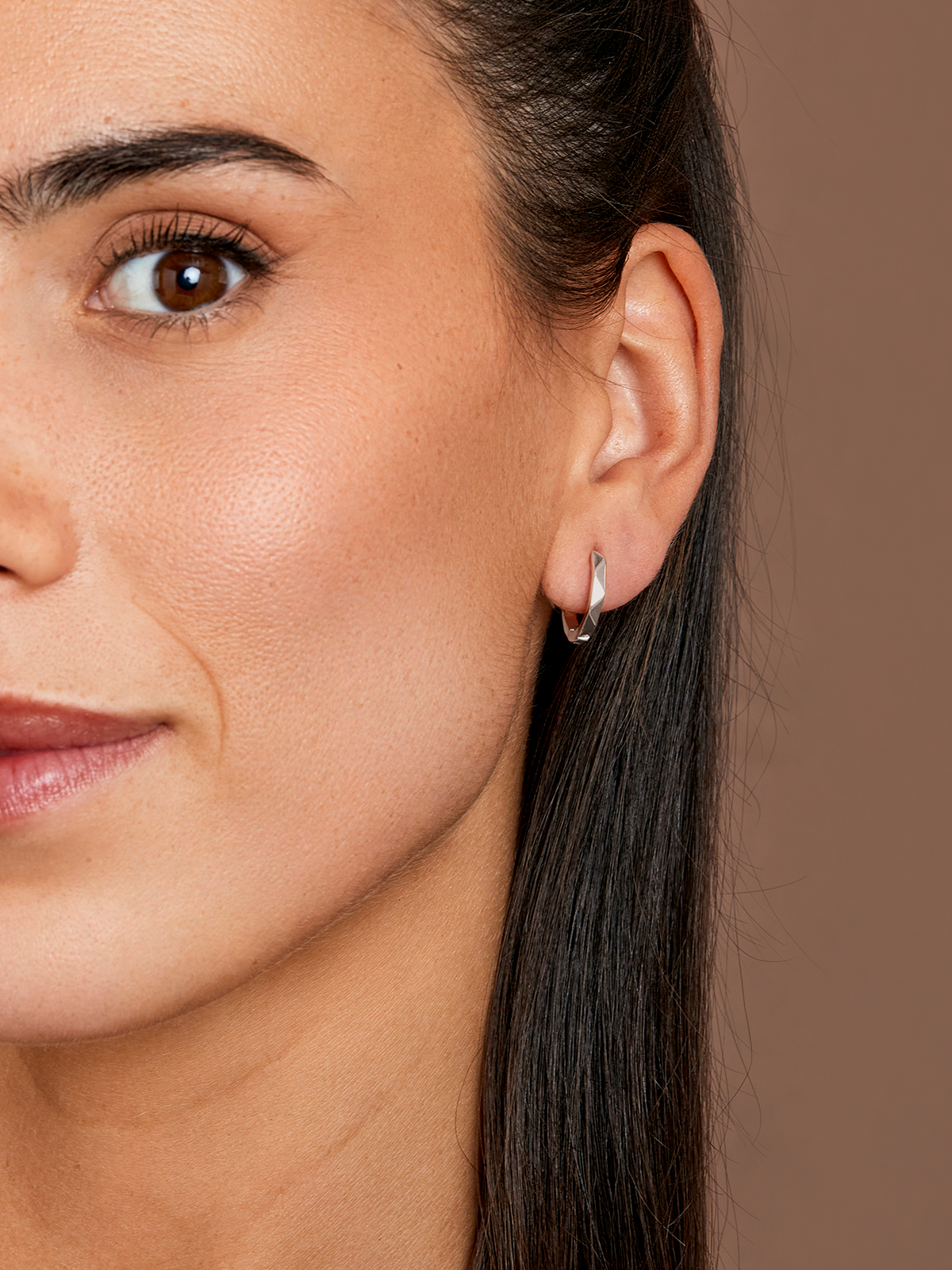 Pendientes aro facetado. Plata de 1ª Ley rodiada. Cierre huggy.