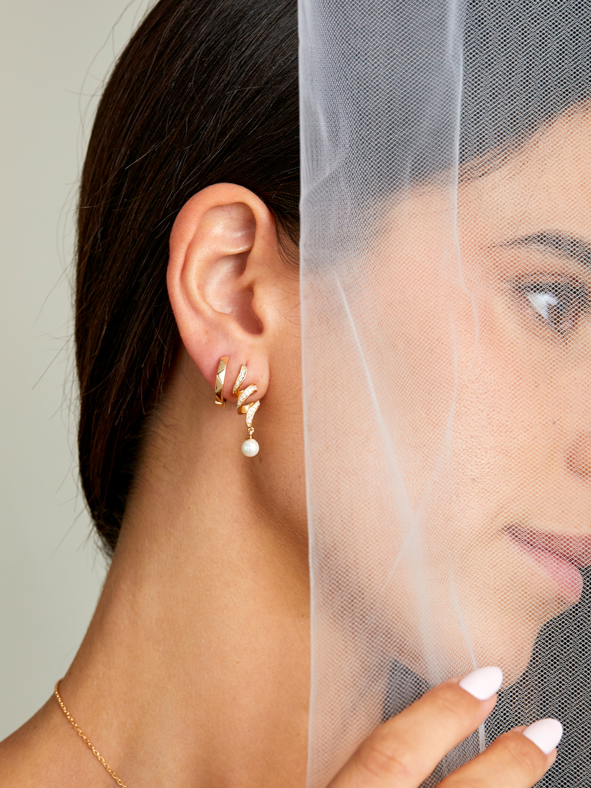Pendientes aro facetado. Plata de 1ª Ley baño en oro de 18k. Cierre huggy.