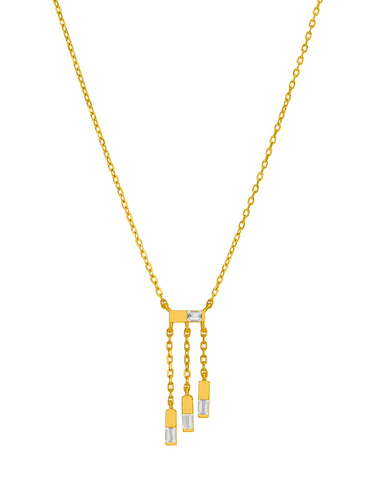 Collar cascada cadenas. Plata de 1ª Ley baño en oro de 18k. Circonitas baguette. Cierre mosquetón. Cadena adaptable.