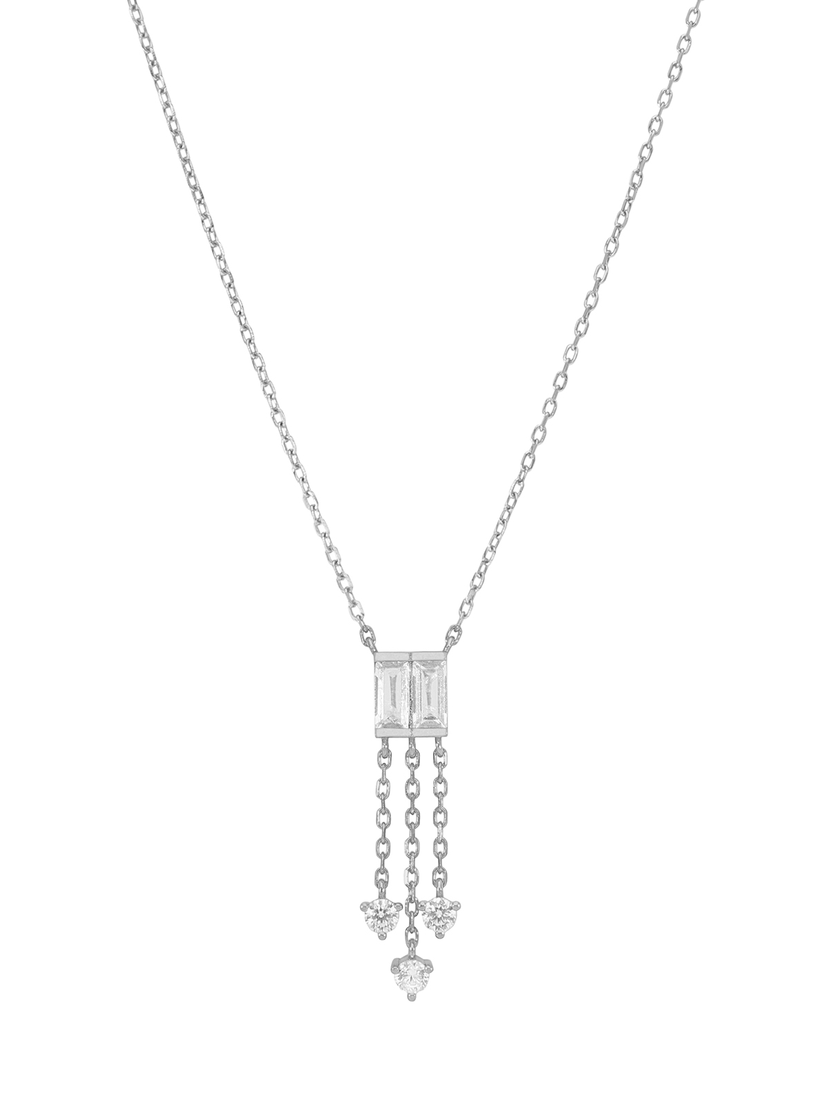 Collar triple cadena circonitas baguette. Plata de 1ª Ley rodiada. Circonitas. Cierre mosquetón. Cadena adaptable.