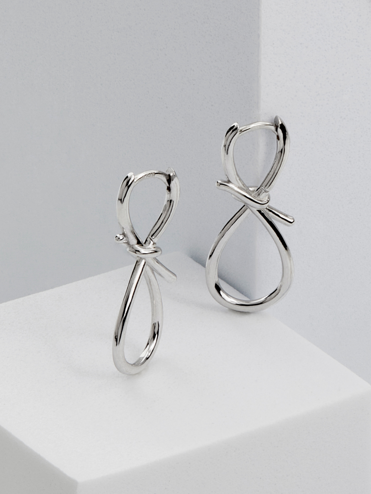 Pendiente infinito nudo. Plata de 1ª Ley rodiada. Cierre huggy. Colección Eternity.