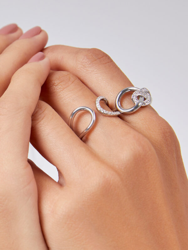 Anillo infinito abierto. Plata de 1ª Ley rodiada. Circonitas en microengaste. Colección Eternity.