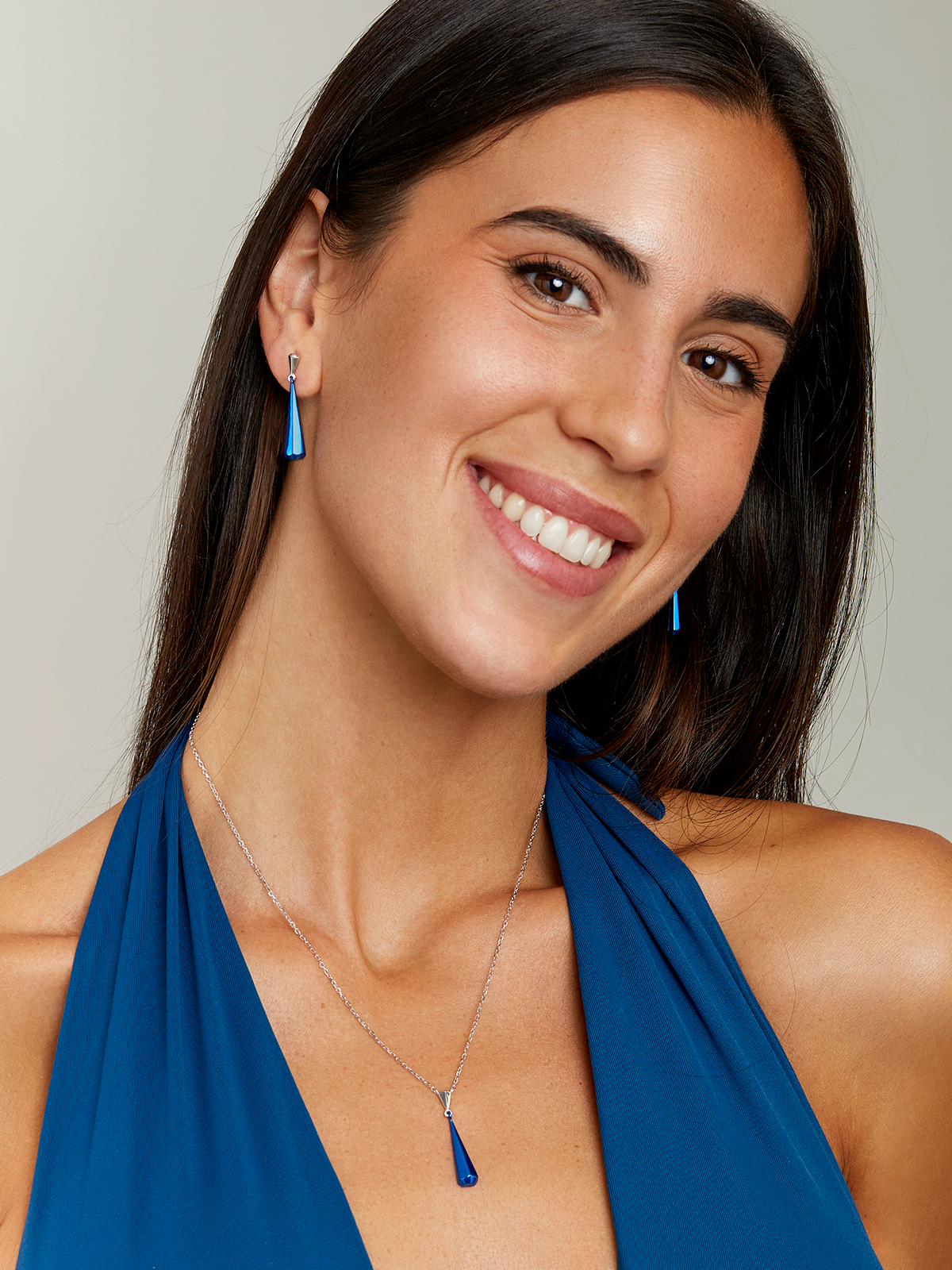 Pendientes geométricos. Plata de 1ª Ley rodiada. Baño color en sapphire blue. Cierre presión.