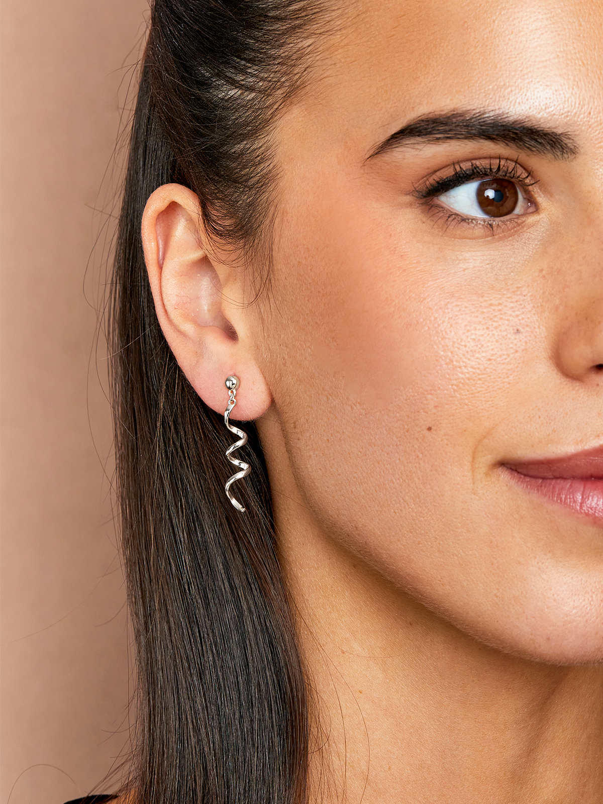 Pendientes tirabuzón. Plata de 1ª Ley rodiada. Cierre presión.