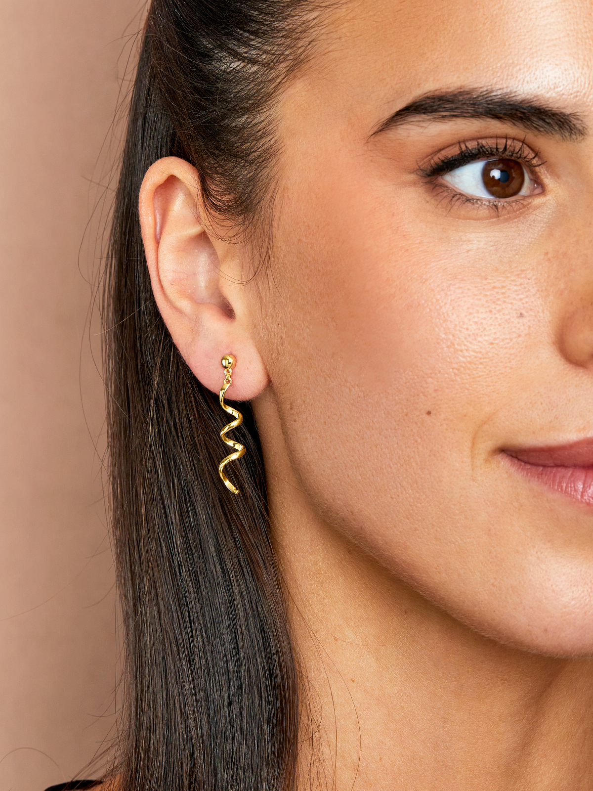 Pendientes tirabuzón. Plata de 1ª Ley baño en oro de 18k. Cierre presión.