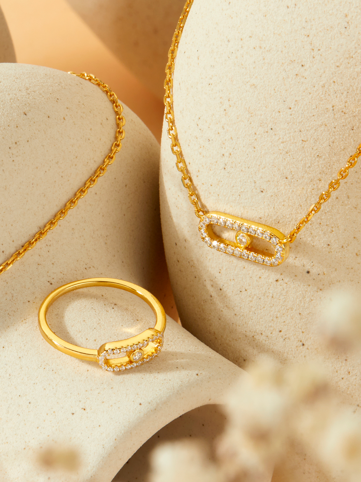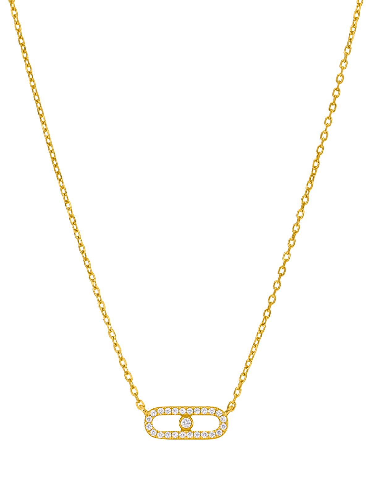 Collar óvalo circonitas. Plata de 1ª Ley baño en oro de 18k. Circonitas en microengaste y bocel. Cierre mosquetón. Cadena adaptable.