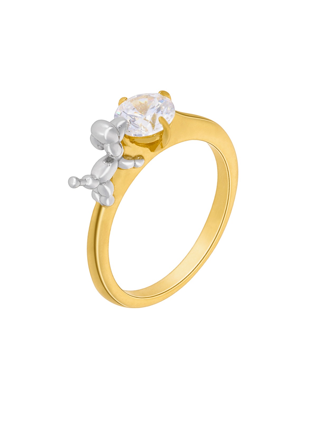Anillo bicolor perrito. Plata de 1ª Ley rodiada y baño en oro de 18k. Circonita clavada. Colección Milano.
