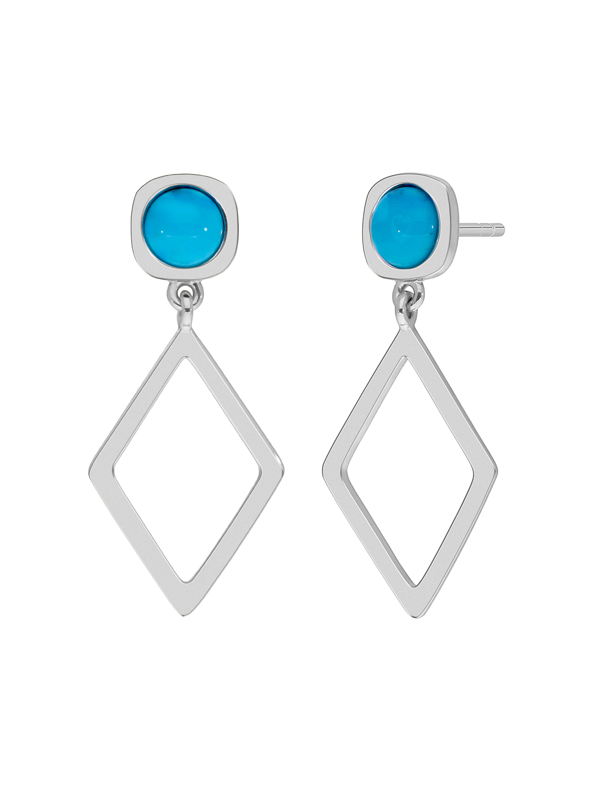 Pendientes rombo con piedra natural. Plata de 1ª Ley rodiada. Piedra natural turquesa. Cierre presión.
