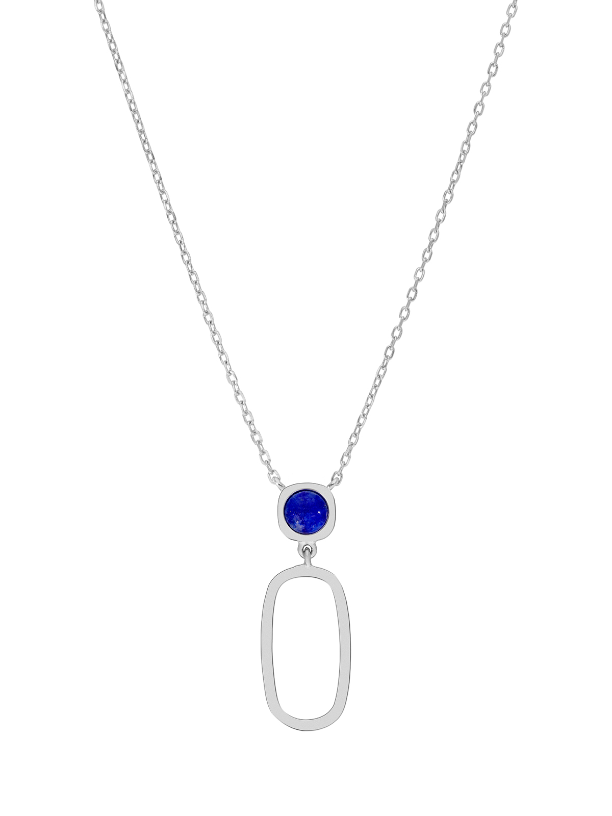 Collar óvalo con piedra natural. Plata de 1ª Ley rodiada. Piedra natural Lapislázuli. Cierre mosquetón. Cadena adaptable.