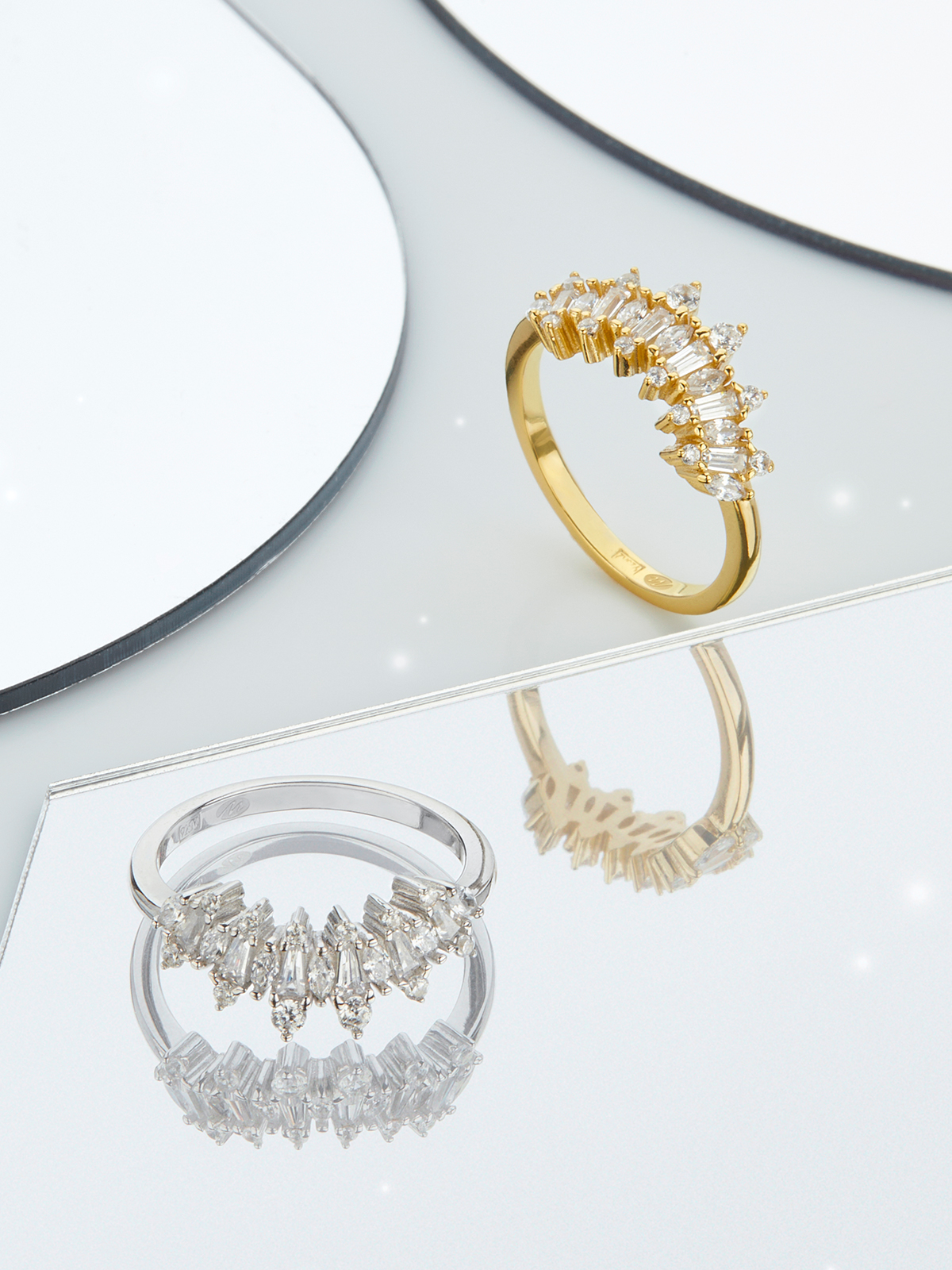 Anillo Wish. Plata de 1ª Ley rodiada. Circonitas clavadas en talla trapecio, redonda y navet.