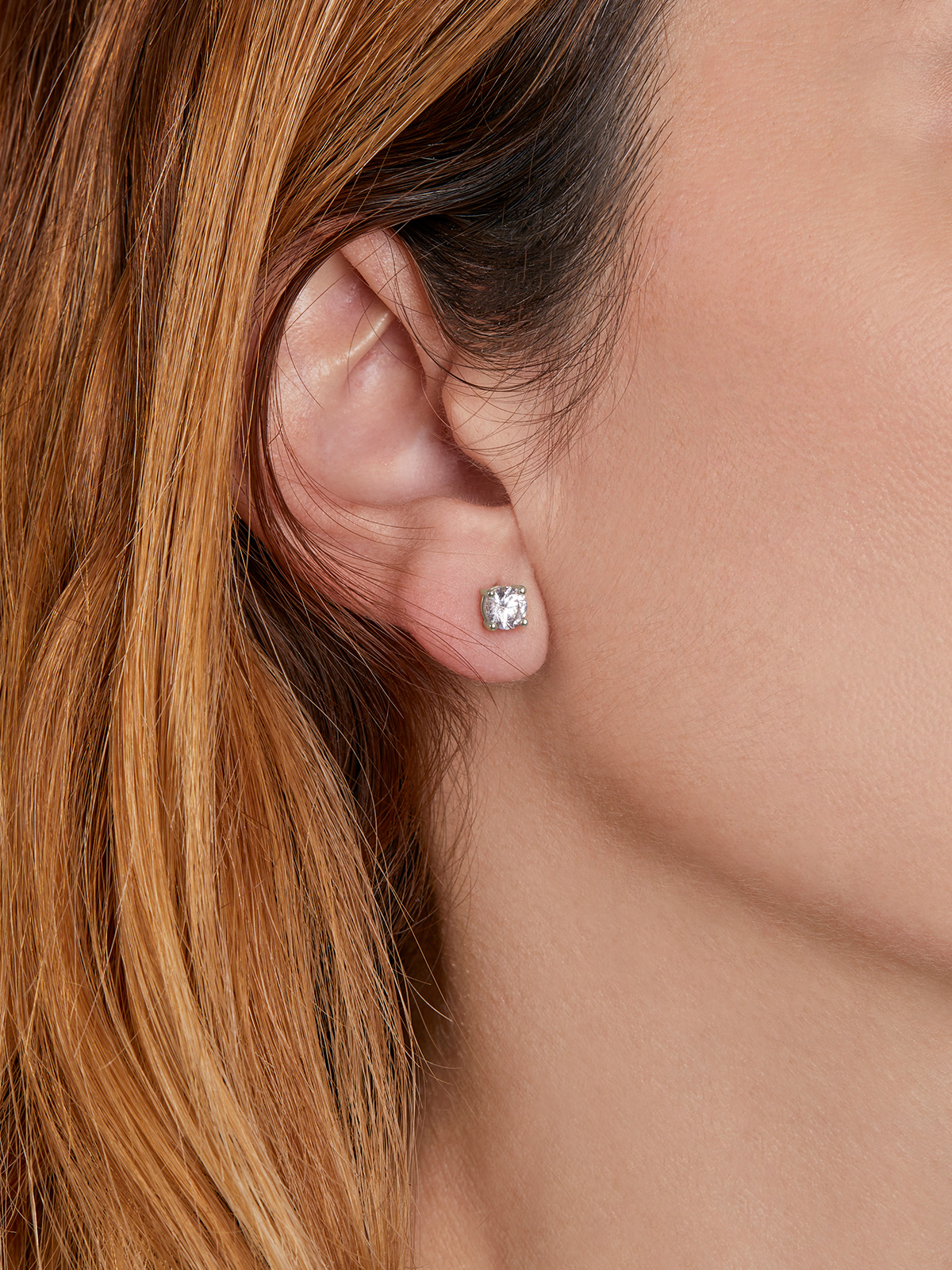 Pendientes redondo con circonita. Plata de ley rodiada. Cierre presión. Dos looks. Colección Zoe.