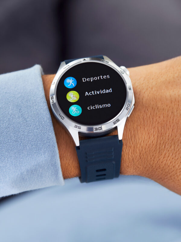 - Material Brazalete: Acero + correa intercambiable de silicona color azul.