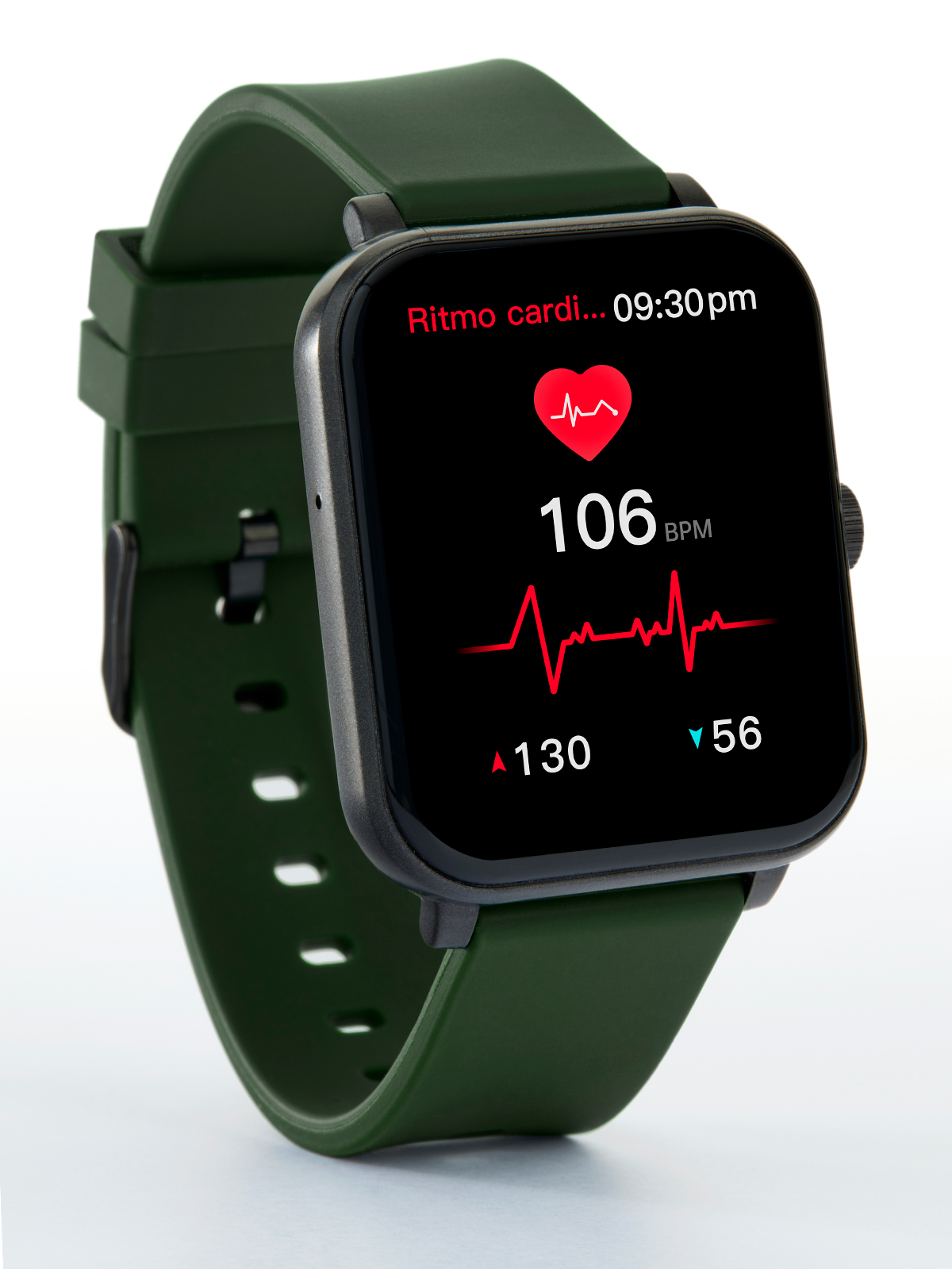 - Material Brazalete: Silicona de color verde oscuro.