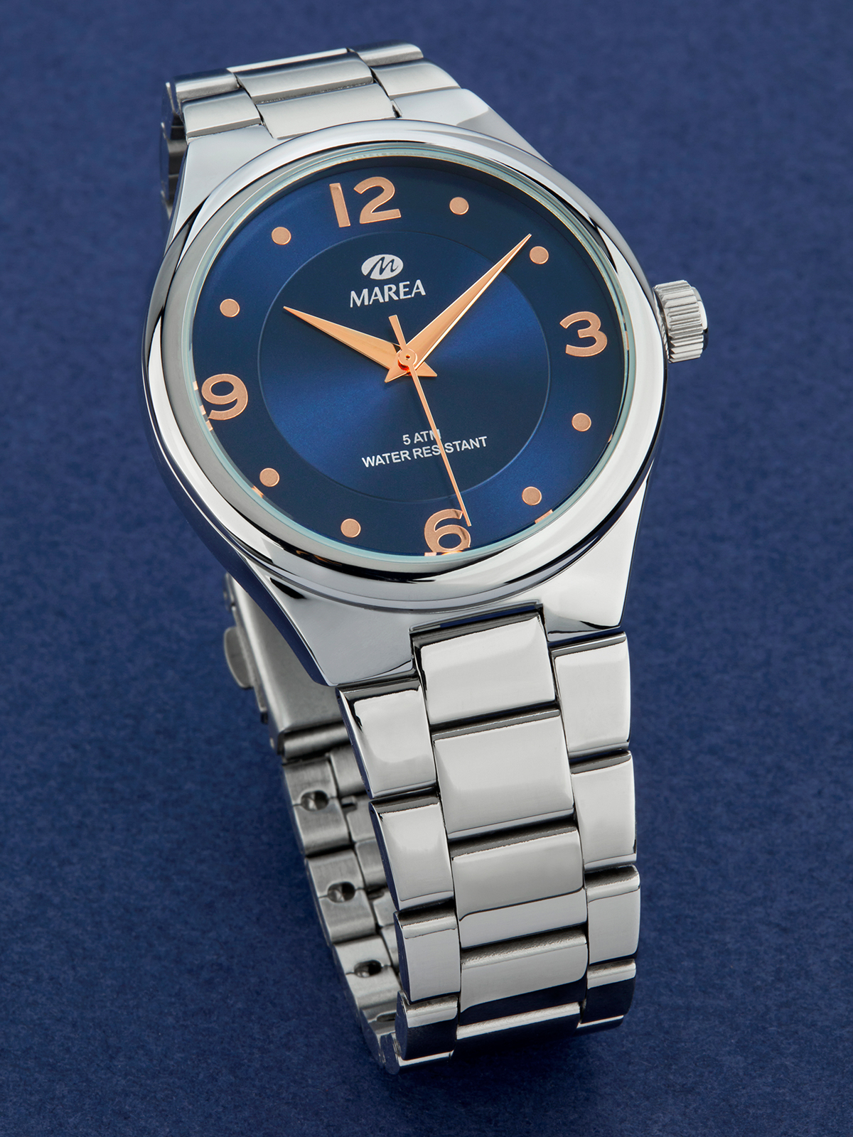 Movimiento japonés: 3 agujas. Diámetro Caja: 40mm. Material Caja: Metal. Material Brazalete: Acero/Steel. Resistente al agua: 5ATM.